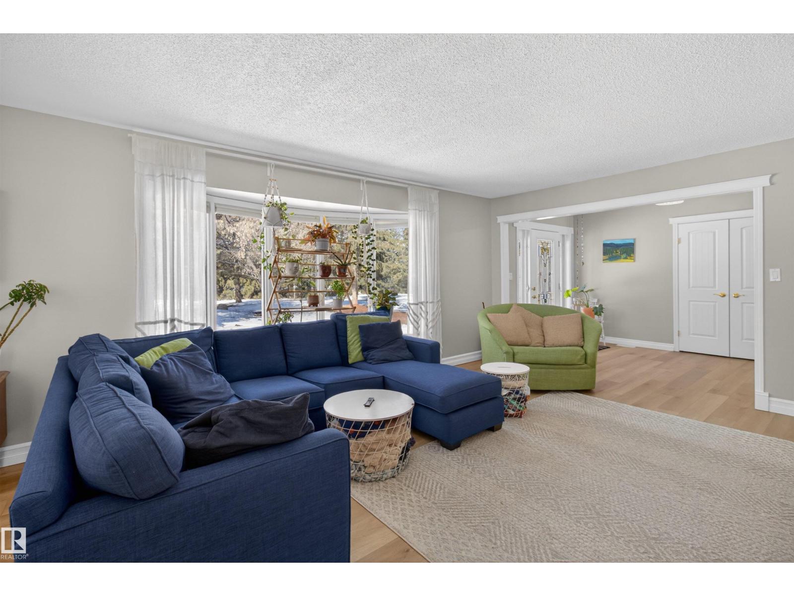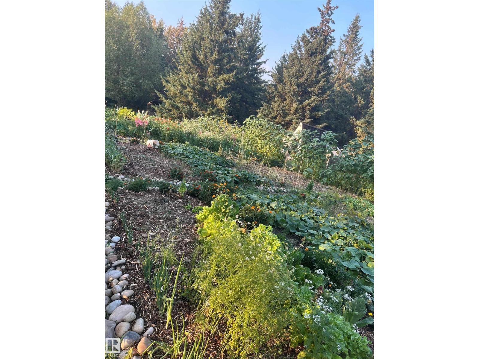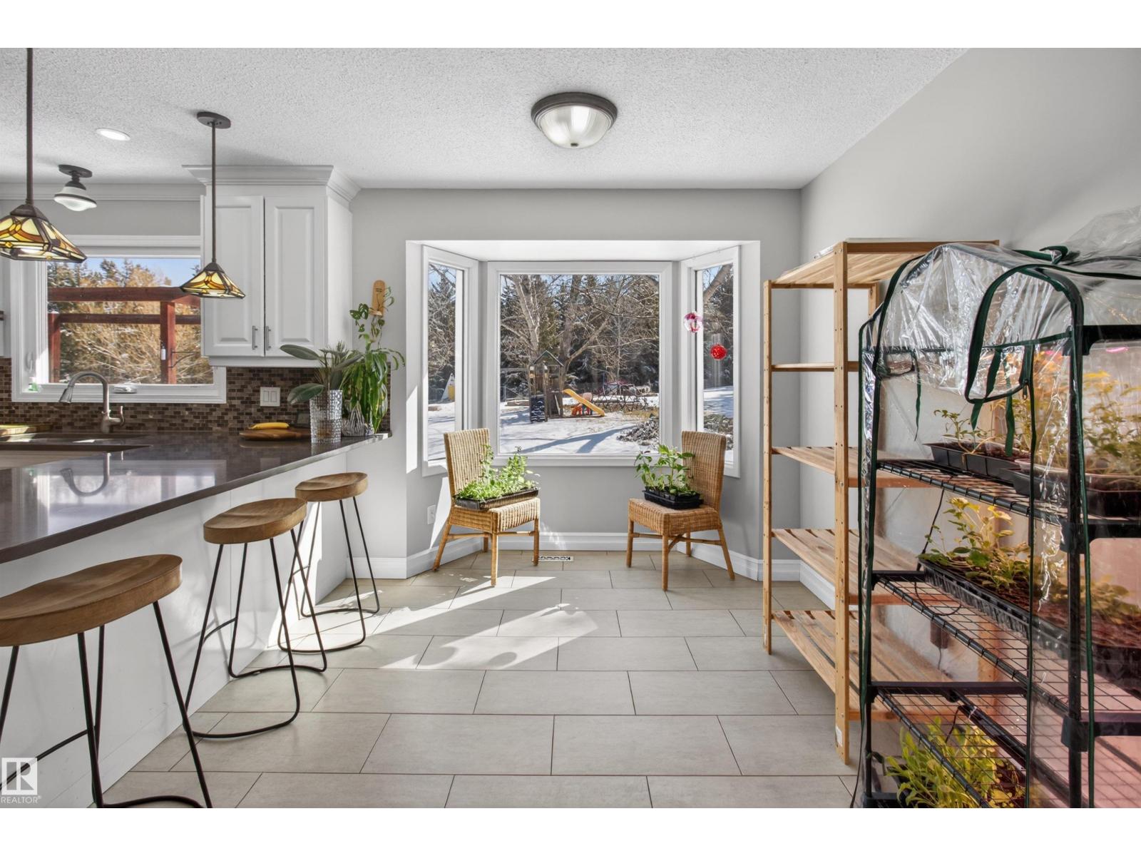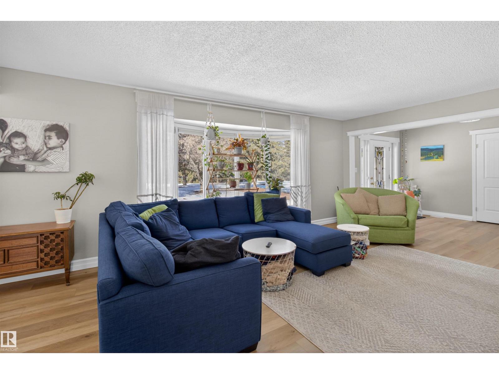 RANCH-STYLE BUNGALOW IN SUN HILL ESTATES! Less than 5 minutes to Sherwood Park! MUNICIPAL WATER! Enjoy this private retreat situated on 2.99 ACRES, surrounded by mature spruce trees. Fabulous open floor plan with over 4000 SQ FT of total living space! Bursting with natural light! Newer luxury vinyl plank flooring. Large entry way and a spacious living room with wood-burning fireplace. Huge dining area with built-in cabinetry. You'll LOVE the STUNNING KITCHEN! Beautiful cabinetry, granite countertops & stainless steel appliances. 5 BEDROOMS! Huge Primary Bedroom & 3 closets! 5-piece bathroom with soaker tub. Main floor laundry, 2 bedrooms & a 2-piece bathroom. Fully finished basement with huge Rec room, wet bar, gas fireplace, 2 additional bedrooms and a 5-piece bathroom. Upgraded furnace, tankless hot water, some newer windows and central AIR-CONDITIONING too! Septic tank & field. OVERSIZED & HEATED GARAGE! Enjoy the beautiful park-like backyard with deck. An amazing home and location for acreage lovers! (id:51989)