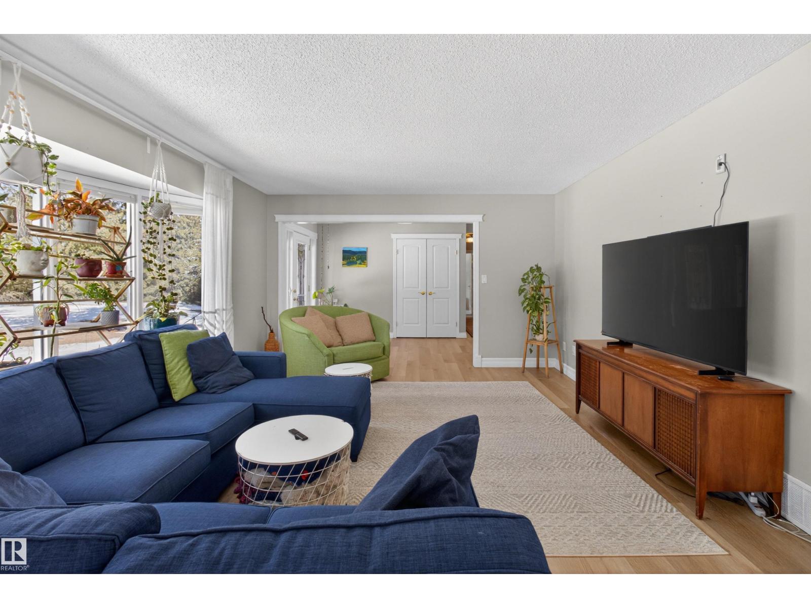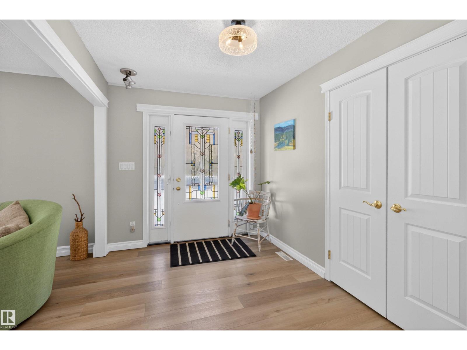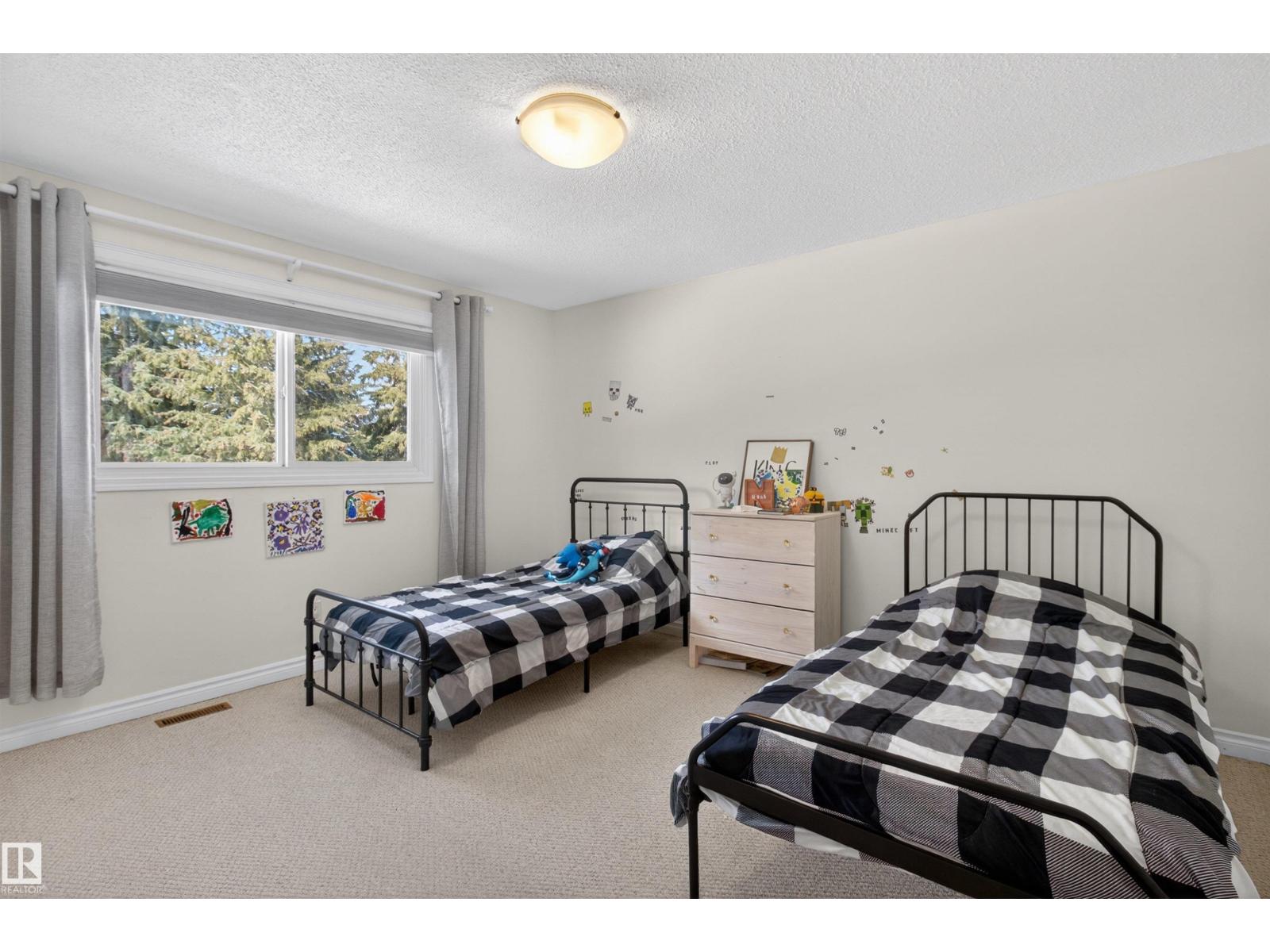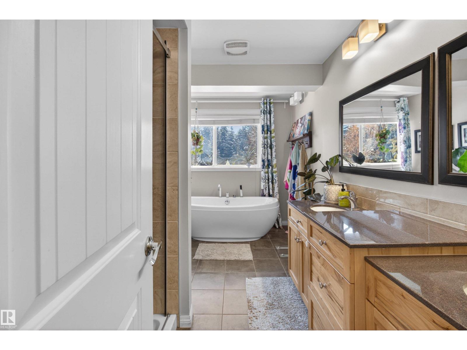 RANCH-STYLE BUNGALOW IN SUN HILL ESTATES! Less than 5 minutes to Sherwood Park! MUNICIPAL WATER! Enjoy this private retreat situated on 2.99 ACRES, surrounded by mature spruce trees. Fabulous open floor plan with over 4000 SQ FT of total living space! Bursting with natural light! Newer luxury vinyl plank flooring. Large entry way and a spacious living room with wood-burning fireplace. Huge dining area with built-in cabinetry. You'll LOVE the STUNNING KITCHEN! Beautiful cabinetry, granite countertops & stainless steel appliances. 5 BEDROOMS! Huge Primary Bedroom & 3 closets! 5-piece bathroom with soaker tub. Main floor laundry, 2 bedrooms & a 2-piece bathroom. Fully finished basement with huge Rec room, wet bar, gas fireplace, 2 additional bedrooms and a 5-piece bathroom. Upgraded furnace, tankless hot water, some newer windows and central AIR-CONDITIONING too! Septic tank & field. OVERSIZED & HEATED GARAGE! Enjoy the beautiful park-like backyard with deck. An amazing home and location for acreage lovers! (id:51989)