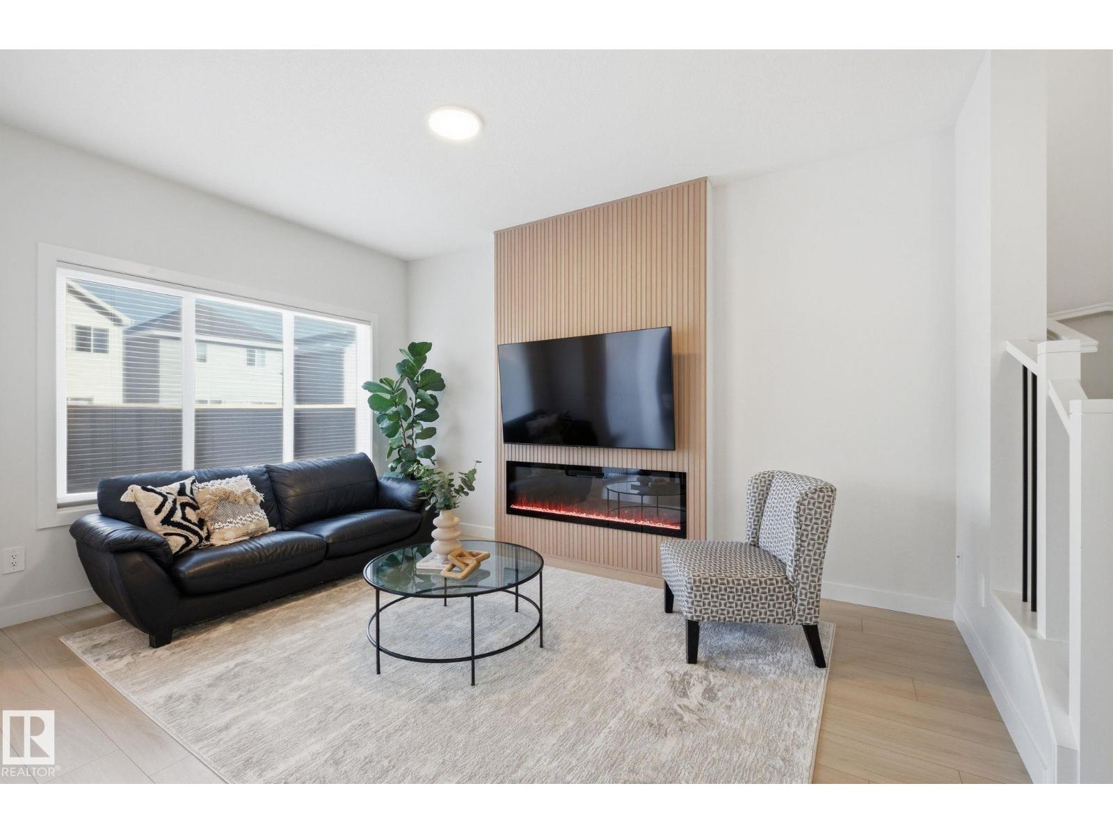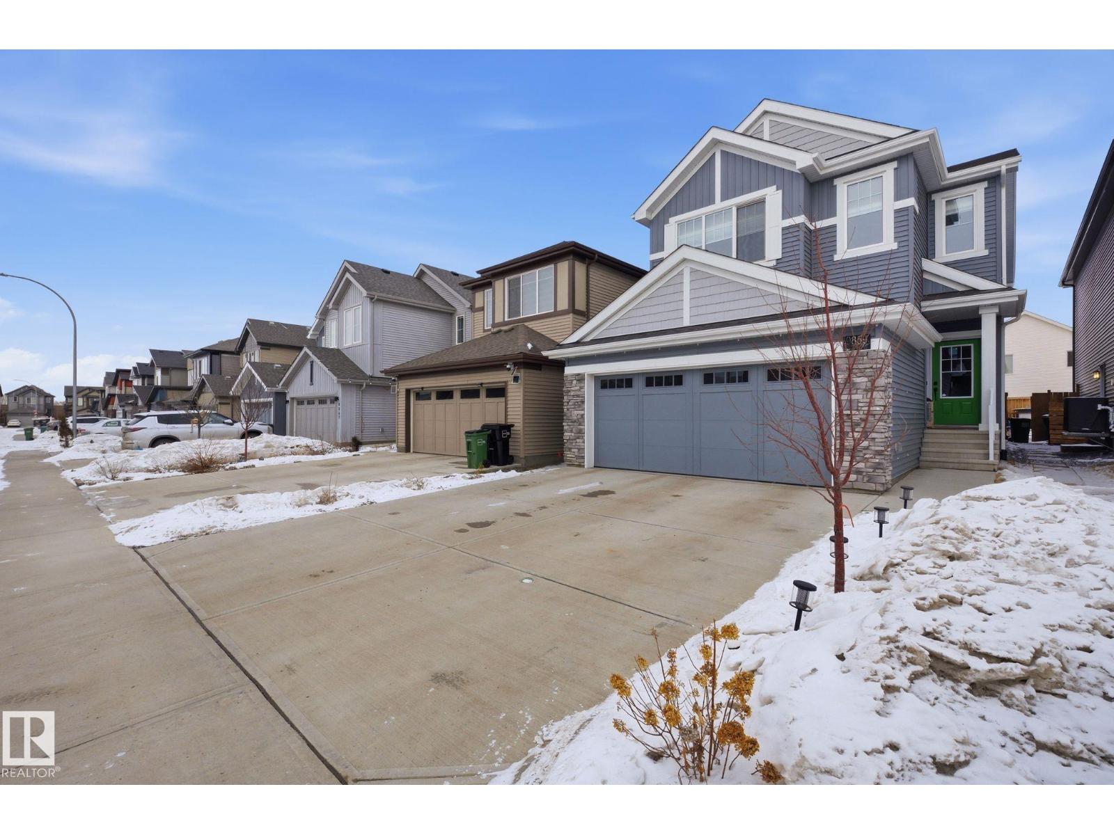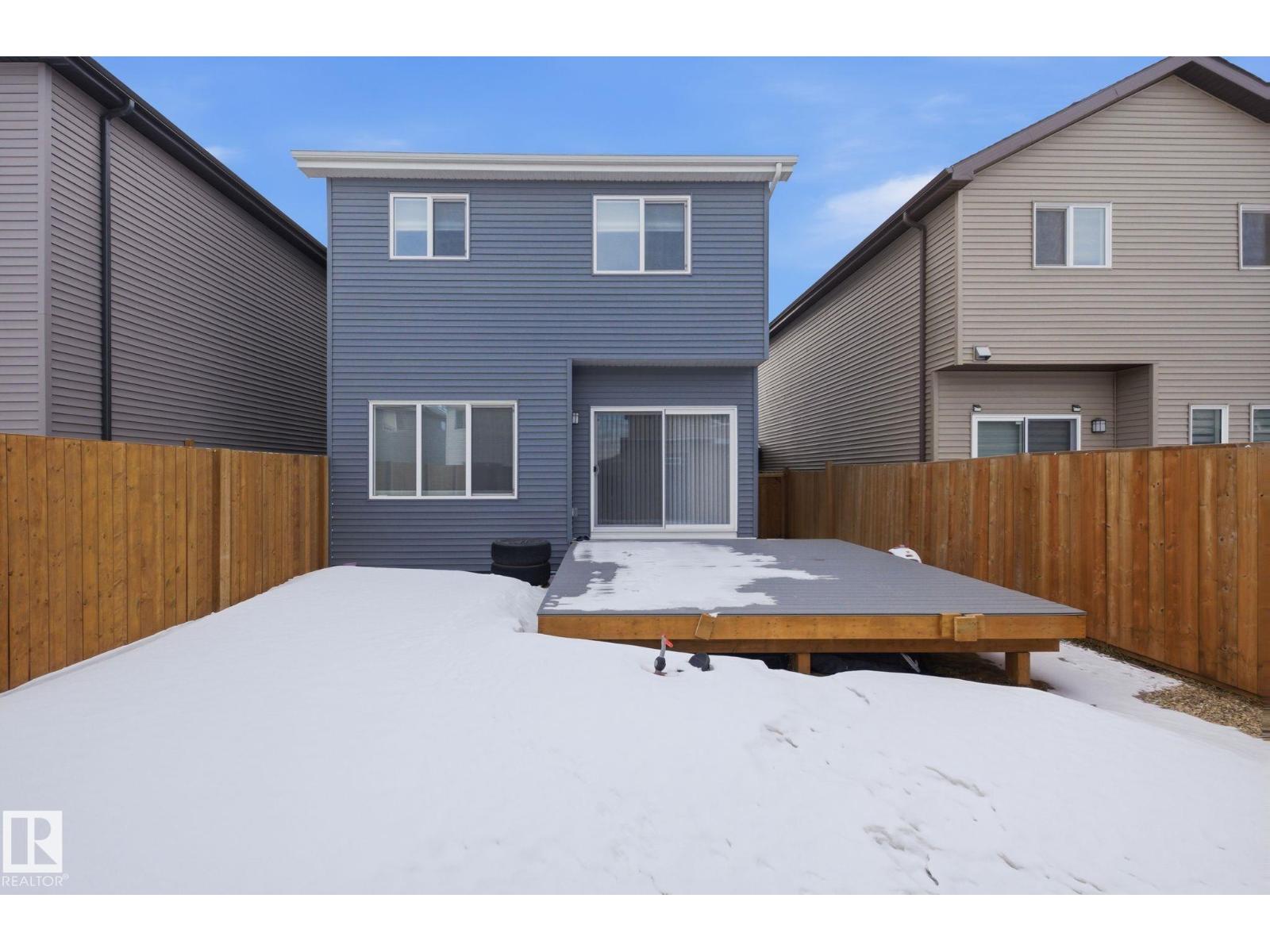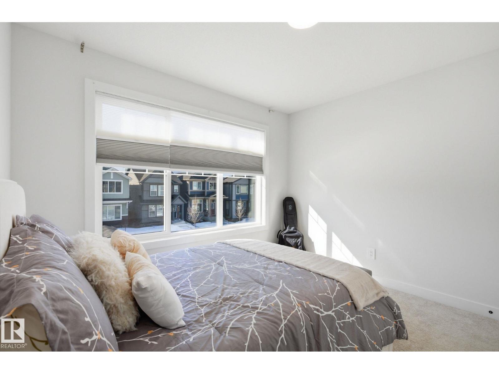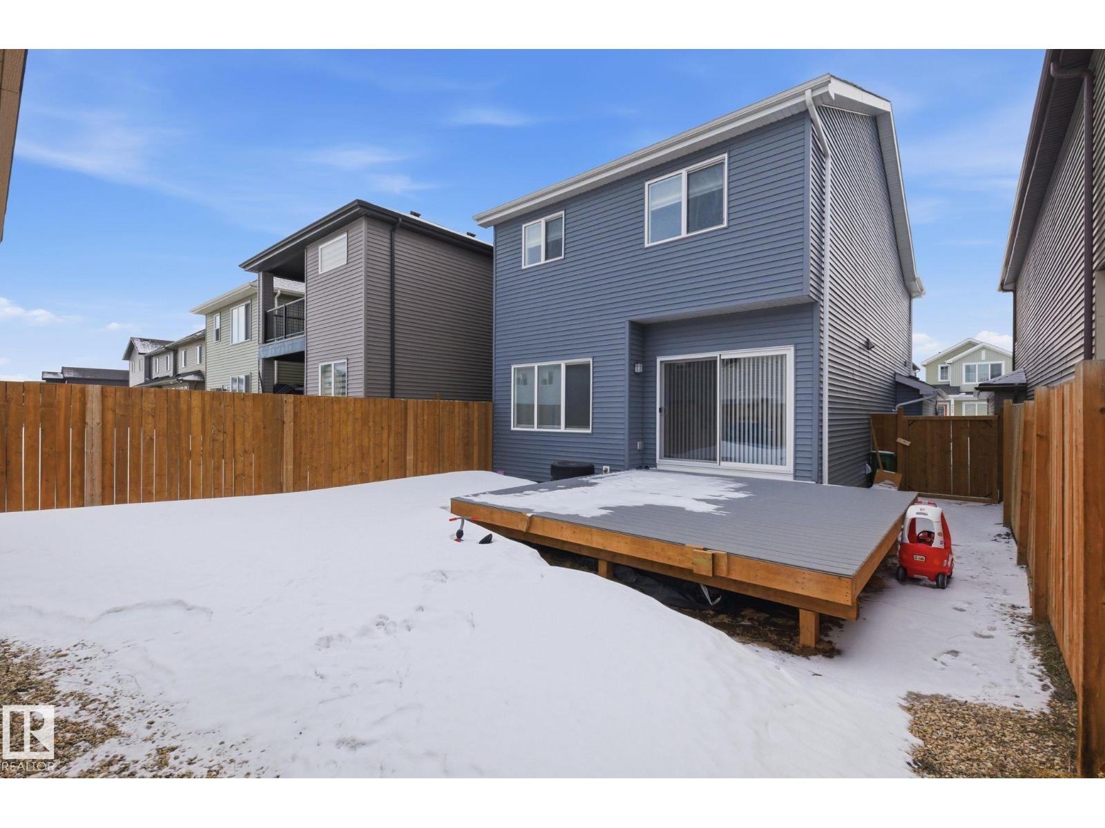 Welcome to Secord, a vibrant West Edmonton community known for its family-friendly atmosphere and convenient access to schools, parks, and everyday amenities. Built in 2022, this beautifully designed 2-storey home offers approximately 1,882 sq ft of above-grade living space with modern finishes throughout. The bright open-concept main floor features a spacious living room with an electric fireplace and large windows with motorized window coverings. The stylish kitchen includes quartz countertops, a gas stove, and an extra-large refrigerator, with ample cabinetry and workspace. The dining area leads to a low-maintenance composite deck, perfect for outdoor entertaining. Upstairs offers a large bonus room, 3 bedrooms, and 2.5 bathrooms, including a primary suite with walk-in closet and ensuite. Additional highlights include an HRV system, truck-sized attached garage, and large backyard storage shed. Move-in ready in a fantastic location. (id:51989)