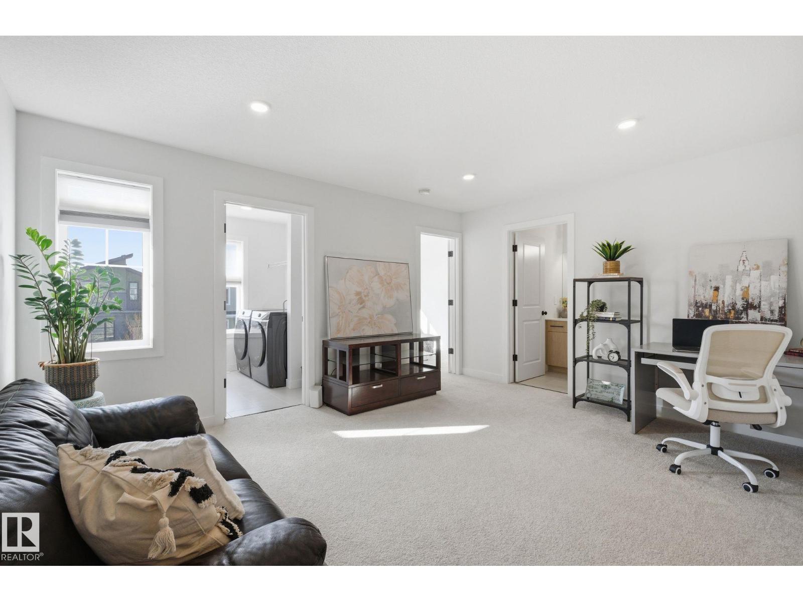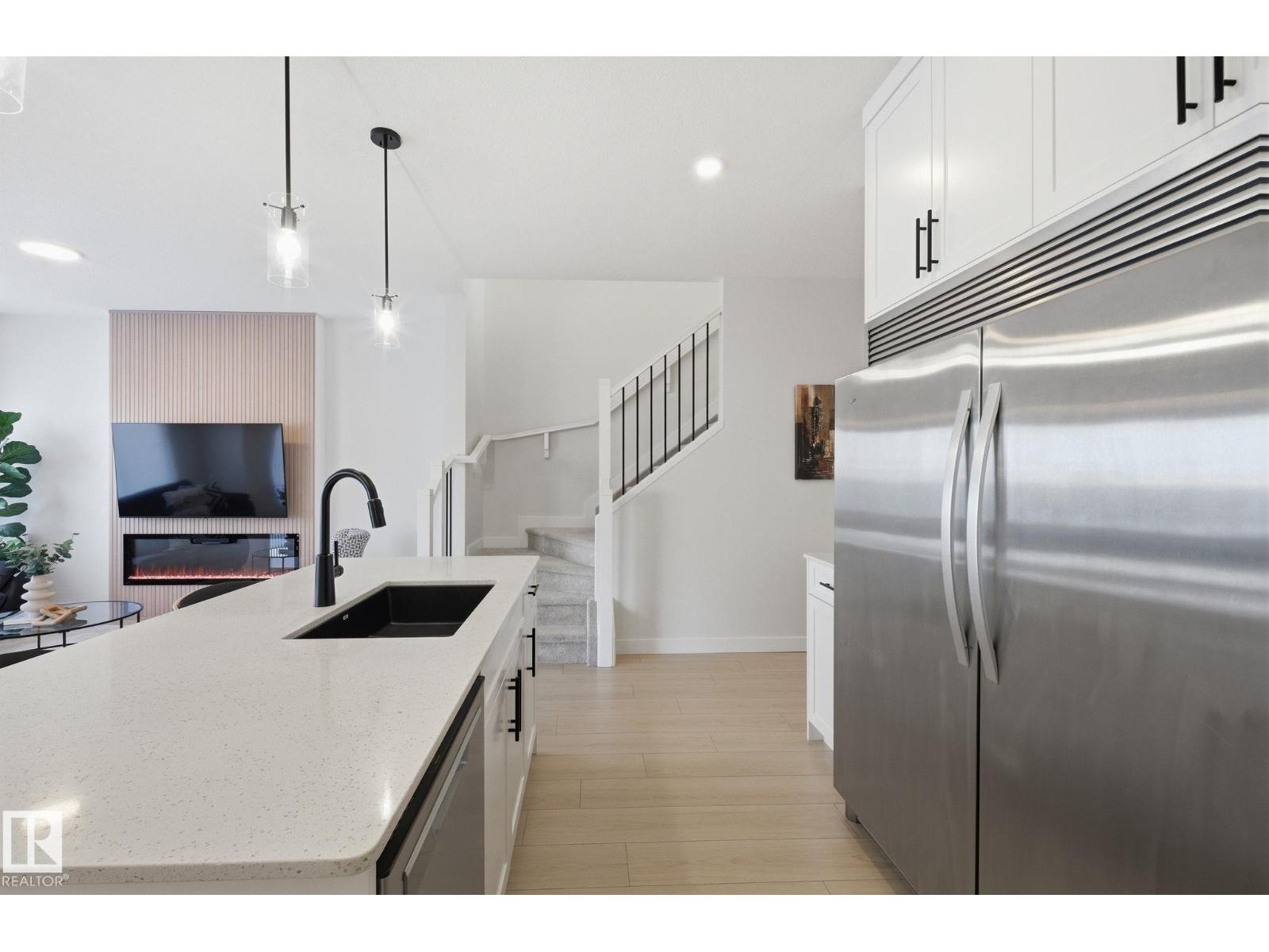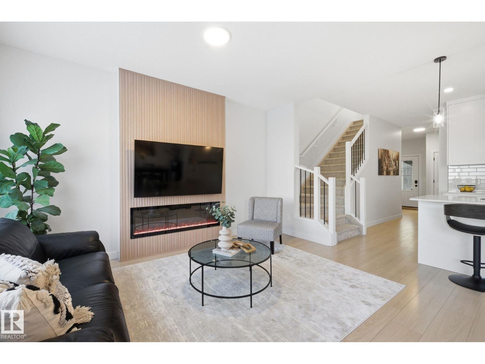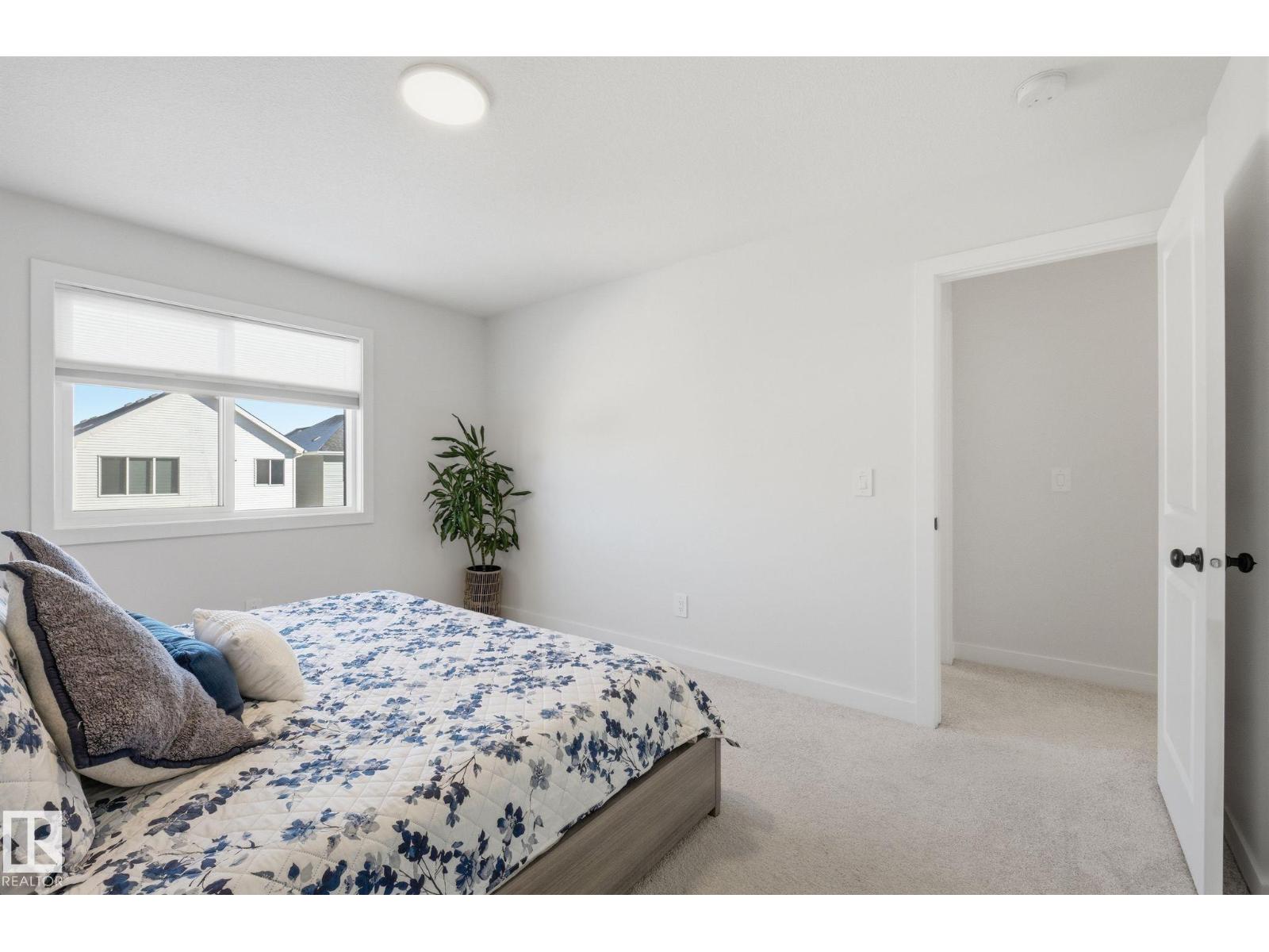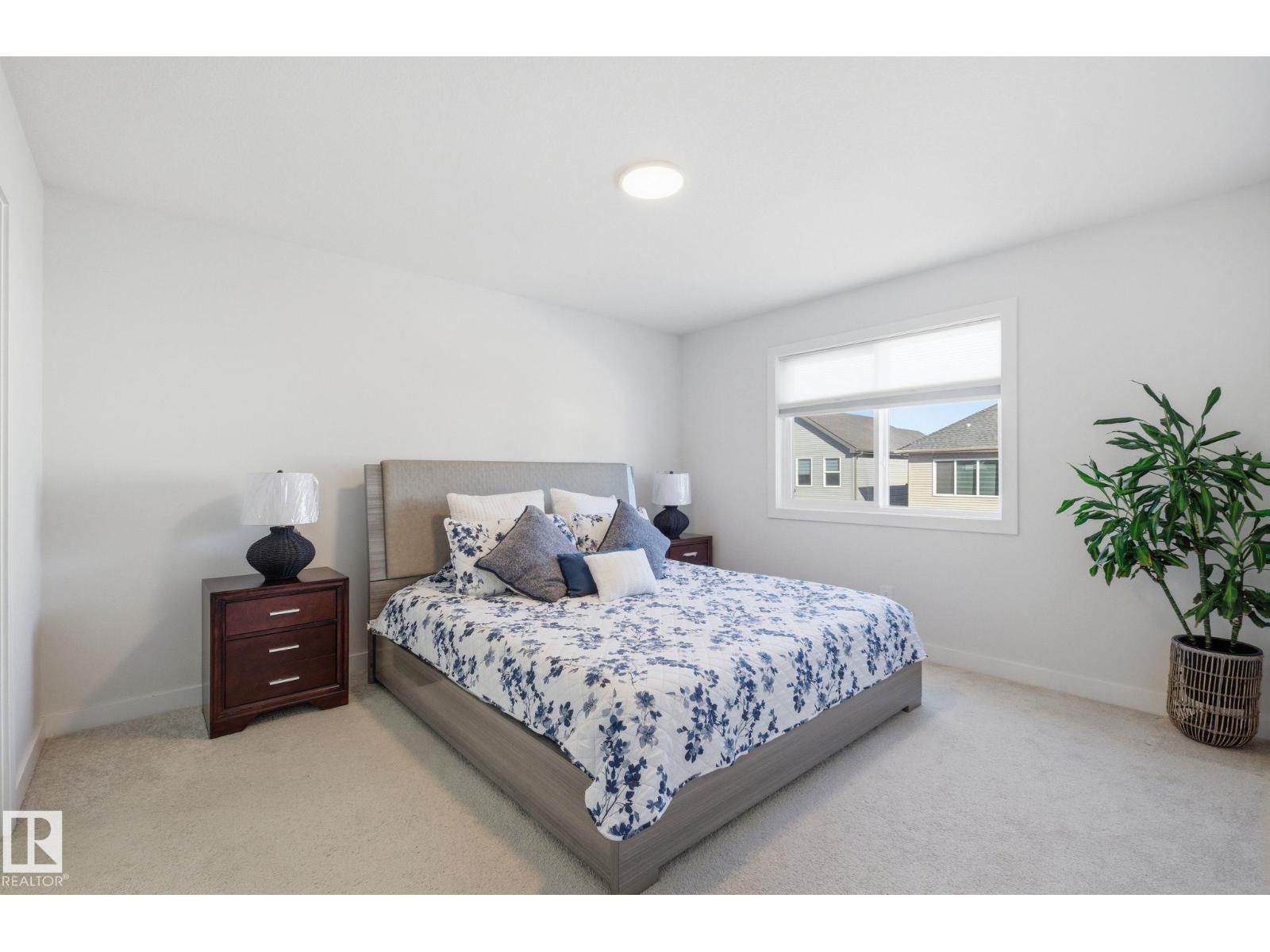 Welcome to Secord, a vibrant West Edmonton community known for its family-friendly atmosphere and convenient access to schools, parks, and everyday amenities. Built in 2022, this beautifully designed 2-storey home offers approximately 1,882 sq ft of above-grade living space with modern finishes throughout. The bright open-concept main floor features a spacious living room with an electric fireplace and large windows with motorized window coverings. The stylish kitchen includes quartz countertops, a gas stove, and an extra-large refrigerator, with ample cabinetry and workspace. The dining area leads to a low-maintenance composite deck, perfect for outdoor entertaining. Upstairs offers a large bonus room, 3 bedrooms, and 2.5 bathrooms, including a primary suite with walk-in closet and ensuite. Additional highlights include an HRV system, truck-sized attached garage, and large backyard storage shed. Move-in ready in a fantastic location. (id:51989)