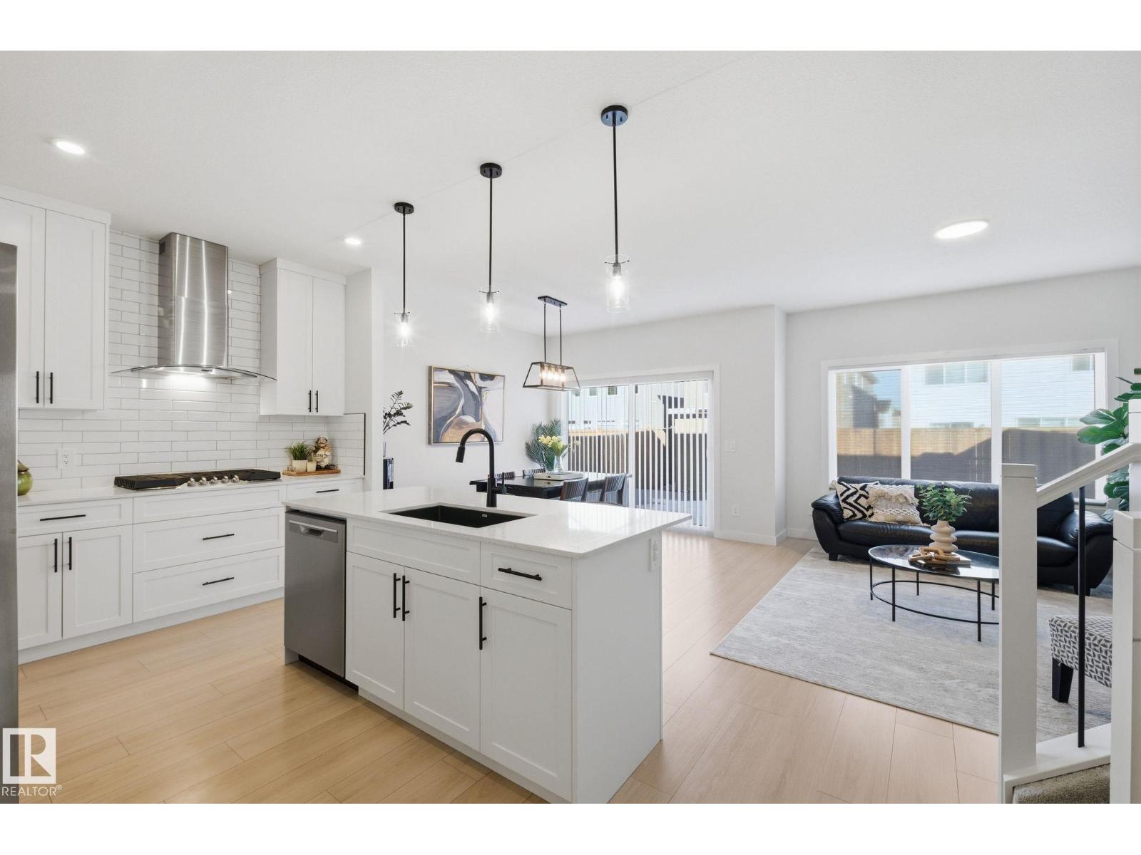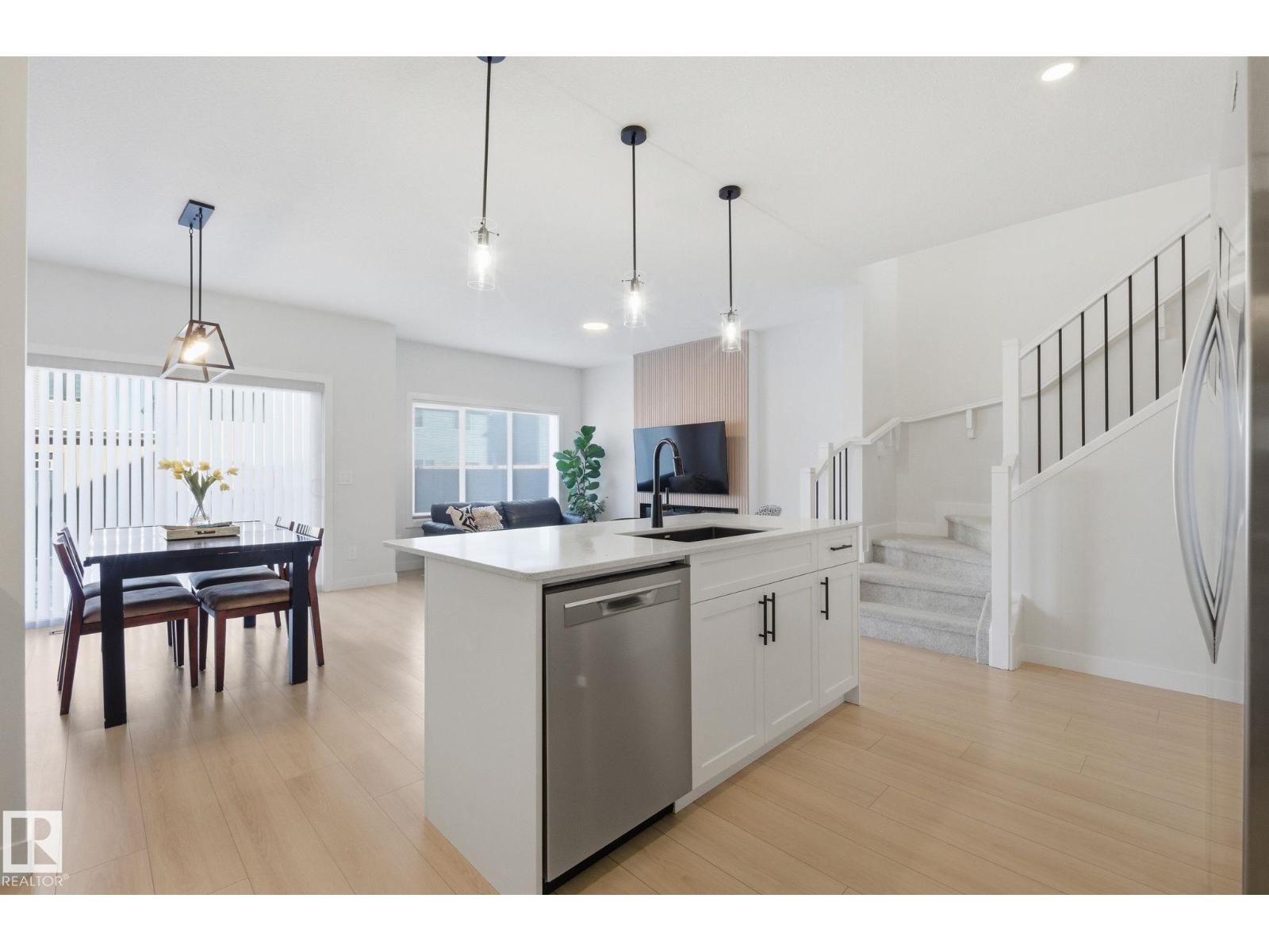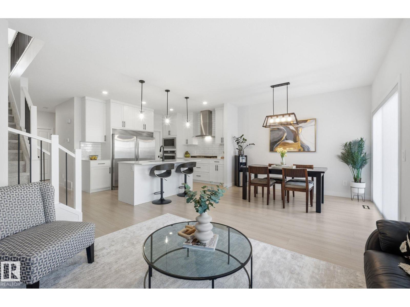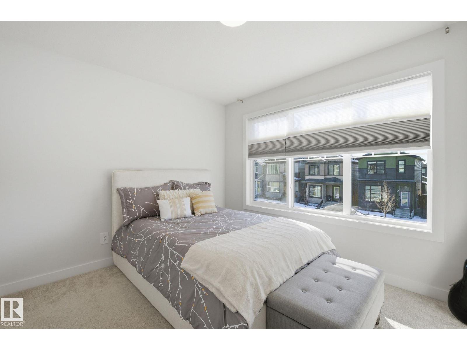 Welcome to Secord, a vibrant West Edmonton community known for its family-friendly atmosphere and convenient access to schools, parks, and everyday amenities. Built in 2022, this beautifully designed 2-storey home offers approximately 1,882 sq ft of above-grade living space with modern finishes throughout. The bright open-concept main floor features a spacious living room with an electric fireplace and large windows with motorized window coverings. The stylish kitchen includes quartz countertops, a gas stove, and an extra-large refrigerator, with ample cabinetry and workspace. The dining area leads to a low-maintenance composite deck, perfect for outdoor entertaining. Upstairs offers a large bonus room, 3 bedrooms, and 2.5 bathrooms, including a primary suite with walk-in closet and ensuite. Additional highlights include an HRV system, truck-sized attached garage, and large backyard storage shed. Move-in ready in a fantastic location. (id:51989)