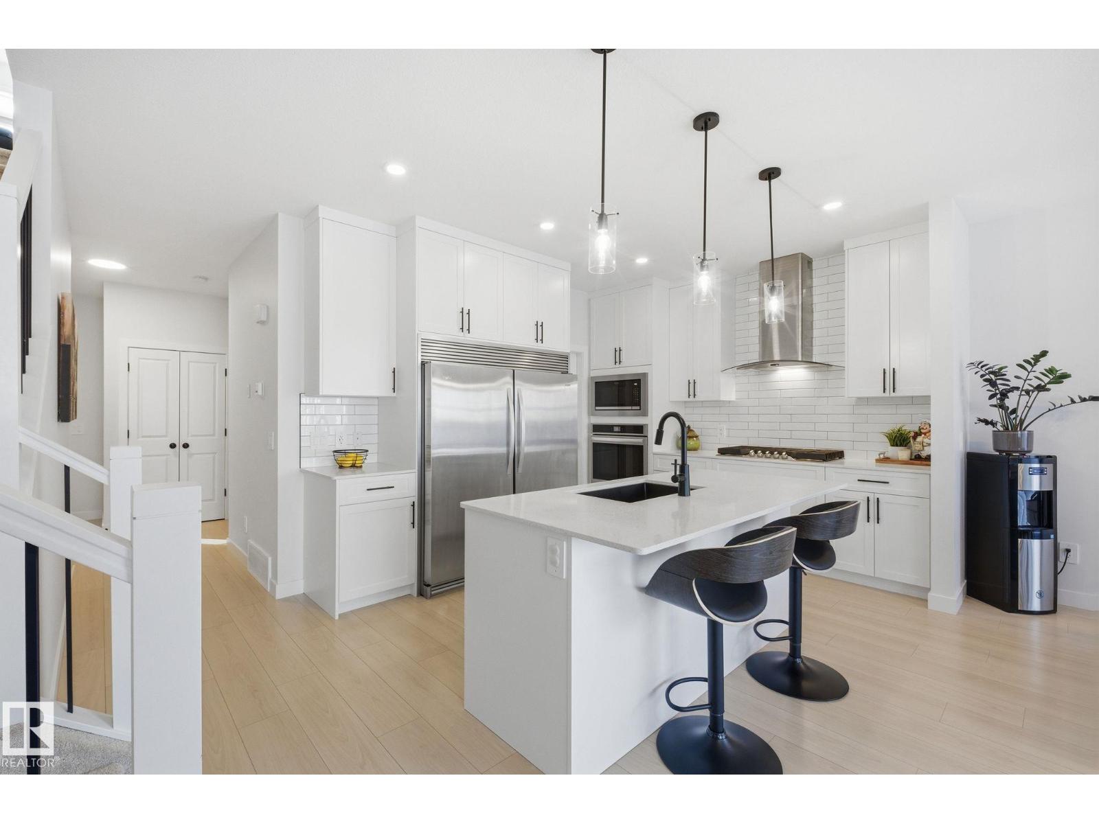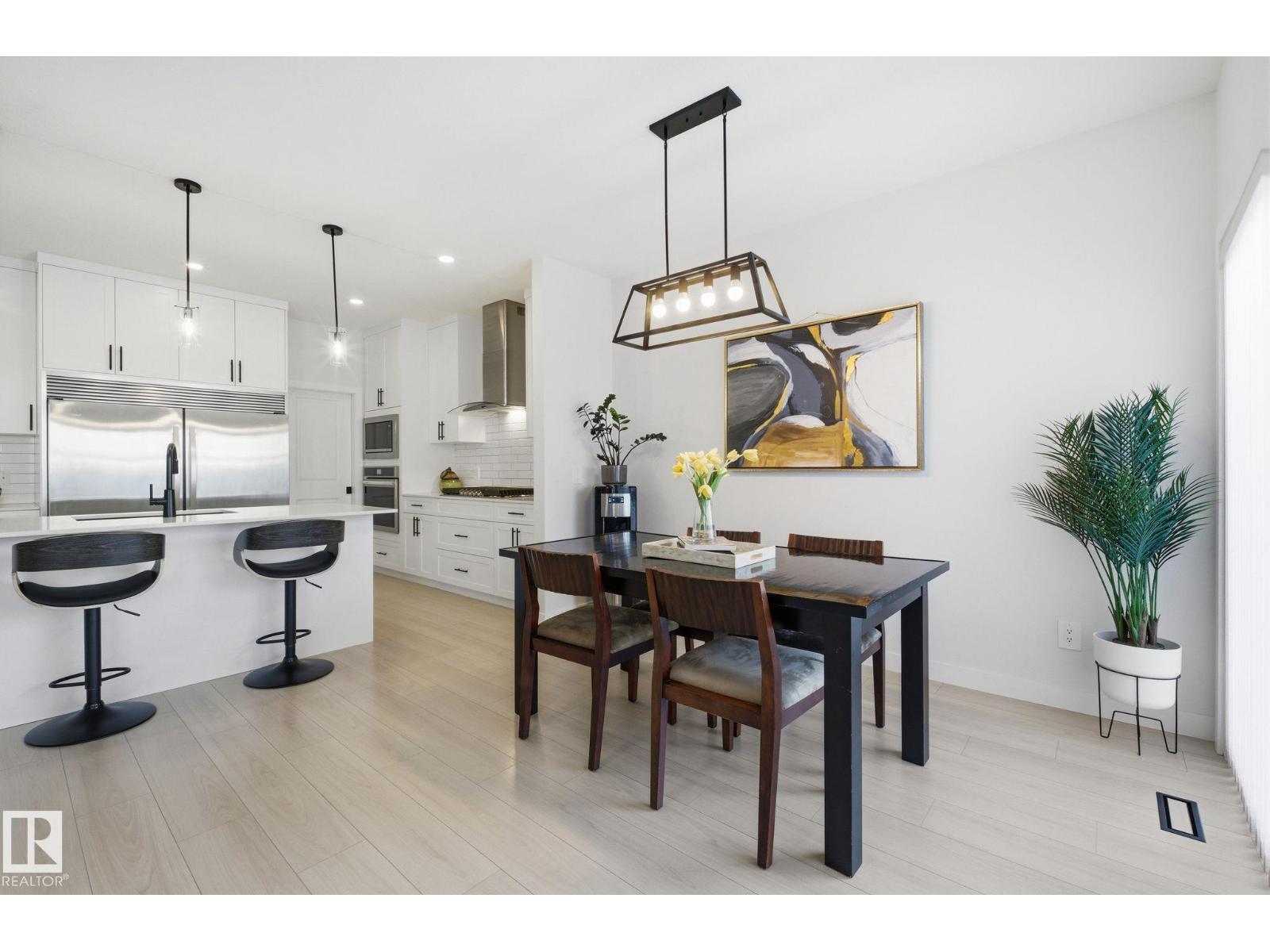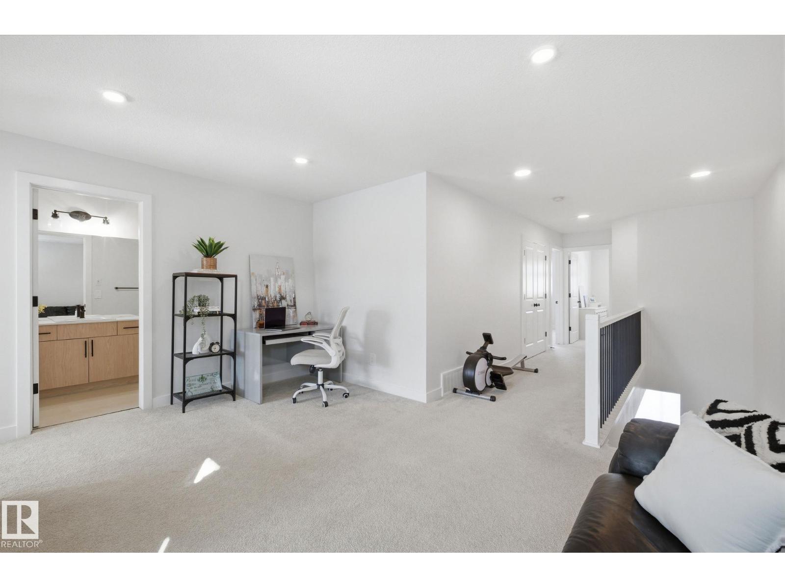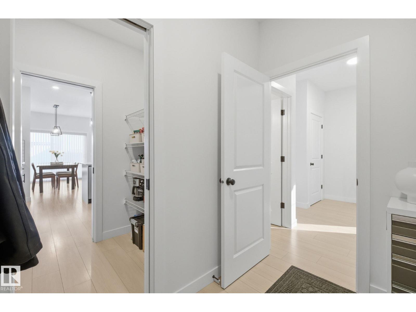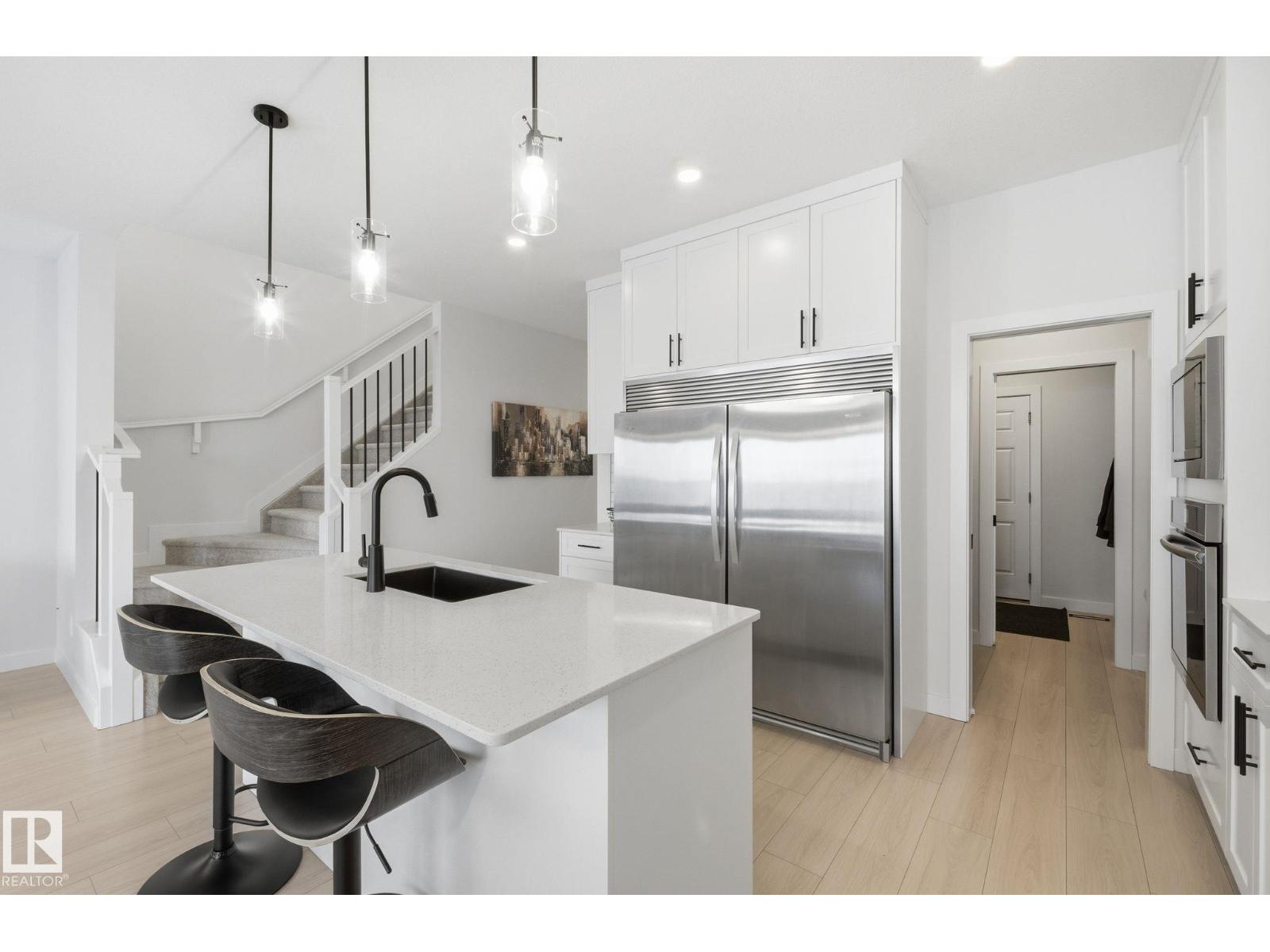 Welcome to Secord, a vibrant West Edmonton community known for its family-friendly atmosphere and convenient access to schools, parks, and everyday amenities. Built in 2022, this beautifully designed 2-storey home offers approximately 1,882 sq ft of above-grade living space with modern finishes throughout. The bright open-concept main floor features a spacious living room with an electric fireplace and large windows with motorized window coverings. The stylish kitchen includes quartz countertops, a gas stove, and an extra-large refrigerator, with ample cabinetry and workspace. The dining area leads to a low-maintenance composite deck, perfect for outdoor entertaining. Upstairs offers a large bonus room, 3 bedrooms, and 2.5 bathrooms, including a primary suite with walk-in closet and ensuite. Additional highlights include an HRV system, truck-sized attached garage, and large backyard storage shed. Move-in ready in a fantastic location. (id:51989)