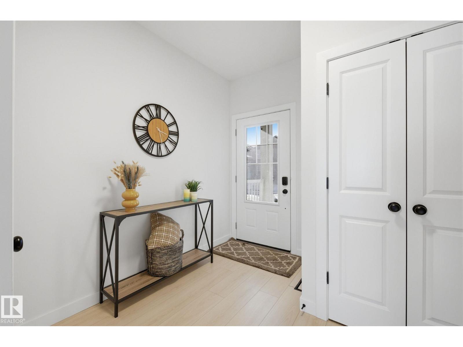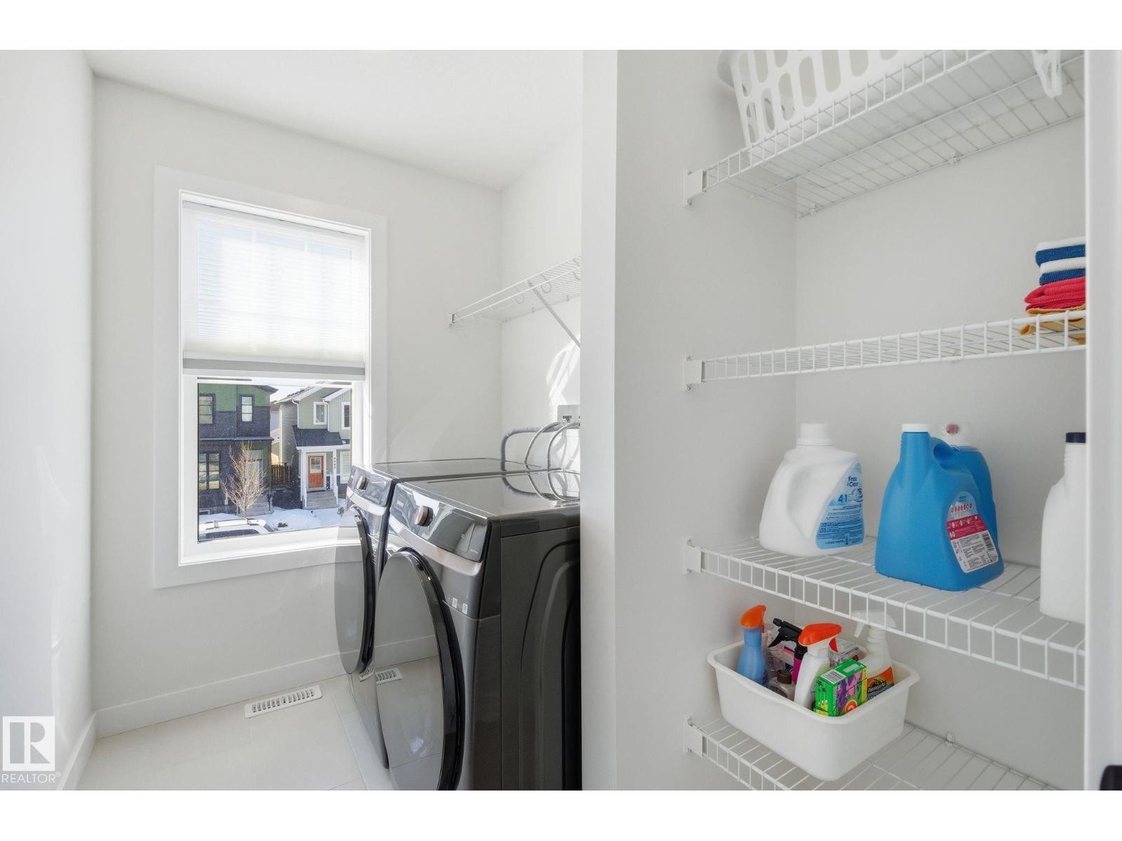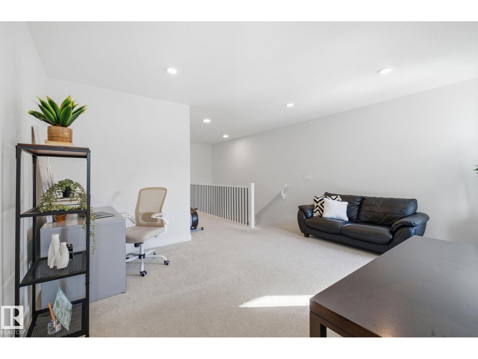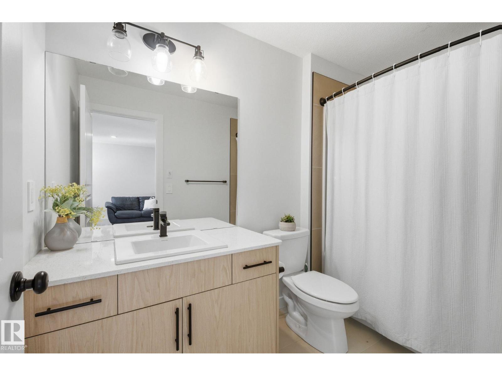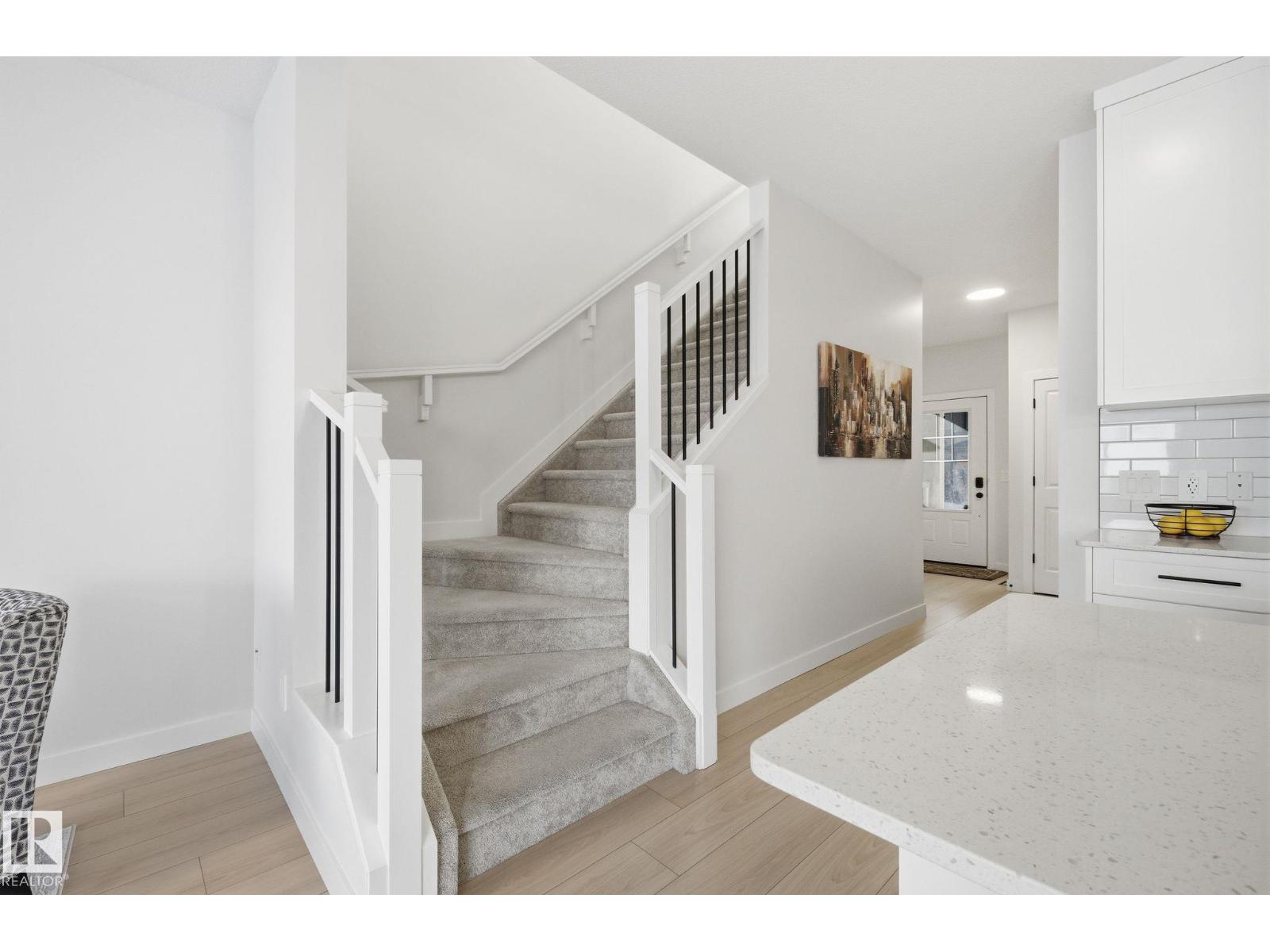 Welcome to Secord, a vibrant West Edmonton community known for its family-friendly atmosphere and convenient access to schools, parks, and everyday amenities. Built in 2022, this beautifully designed 2-storey home offers approximately 1,882 sq ft of above-grade living space with modern finishes throughout. The bright open-concept main floor features a spacious living room with an electric fireplace and large windows with motorized window coverings. The stylish kitchen includes quartz countertops, a gas stove, and an extra-large refrigerator, with ample cabinetry and workspace. The dining area leads to a low-maintenance composite deck, perfect for outdoor entertaining. Upstairs offers a large bonus room, 3 bedrooms, and 2.5 bathrooms, including a primary suite with walk-in closet and ensuite. Additional highlights include an HRV system, truck-sized attached garage, and large backyard storage shed. Move-in ready in a fantastic location. (id:51989)