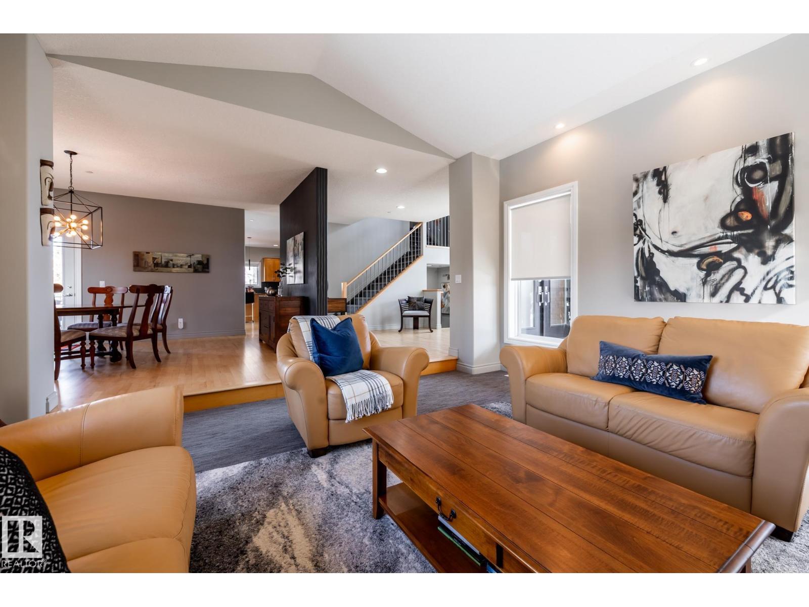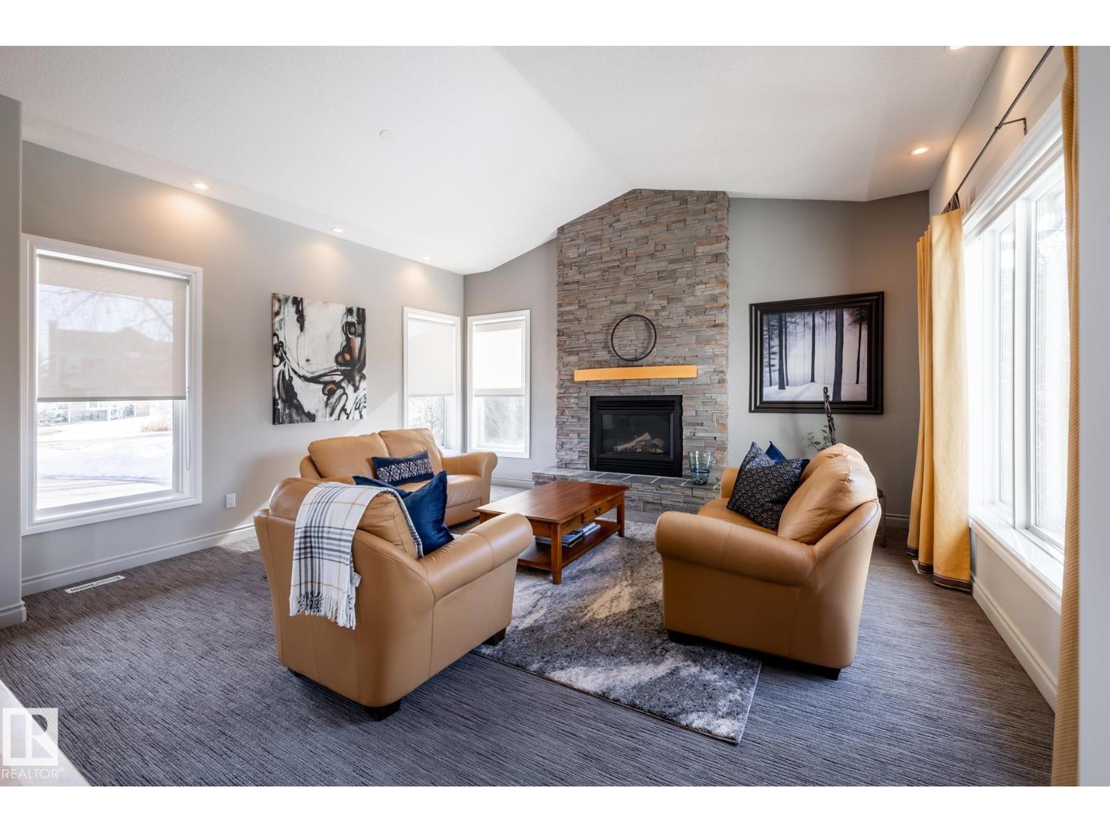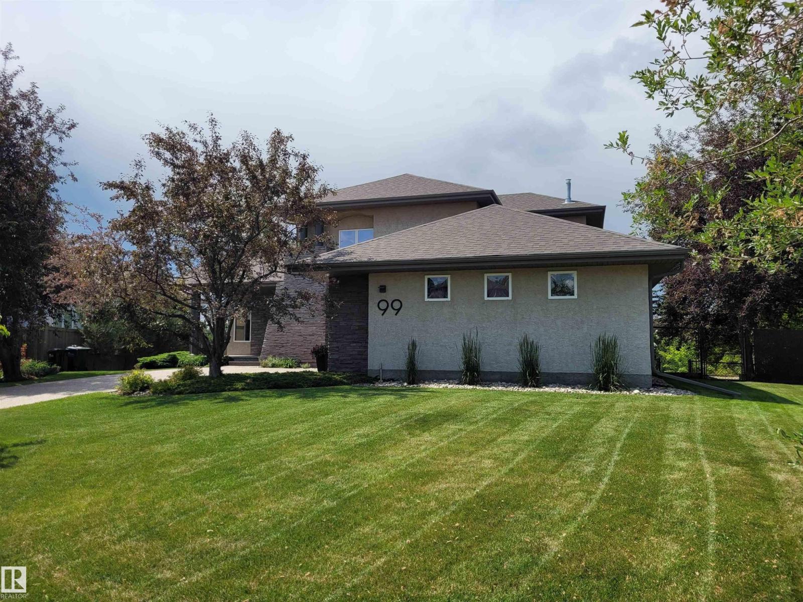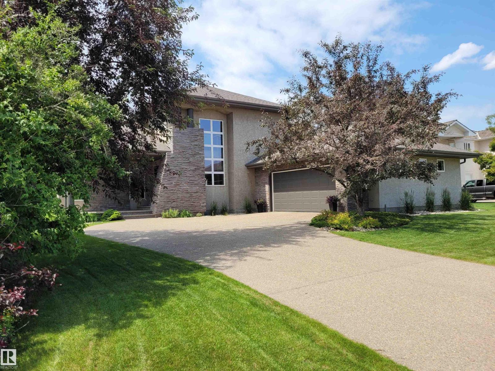 EXECUTIVE HOME WITH PRIVATE LOT....!WELCOME HOME. METICULOUS ATTENTION TO DETAIL. CUL DE SAC LOCATION. Upon entering this property you walk into a spacious foyer, living room with vaulted ceilings and feature stone fireplace and formal dining room. Spacious nook area, walk in pantry and large kitchen with granite and new SS appliances. Kitchen walks onto a large deck overlooking yard. Main floor laundry room with sink and loads of closets. Upstairs is a private office and the Primary retreat is expansive with walk in closet, and well appointed 5 pce.ensuite. Basement is a WALKOUT with in-floor heating, 2nd and 3rd bedrooms, rec room with doors to lower covered patio and 4 pce. bathroom.YARD is beautifully landscaped with private sitting area and firepit. Oversized dble garage with man door, drain and cold water tap. Upgrades: roof (2024),HE furnace (2025) sump pump (2023) and more. (id:51989)