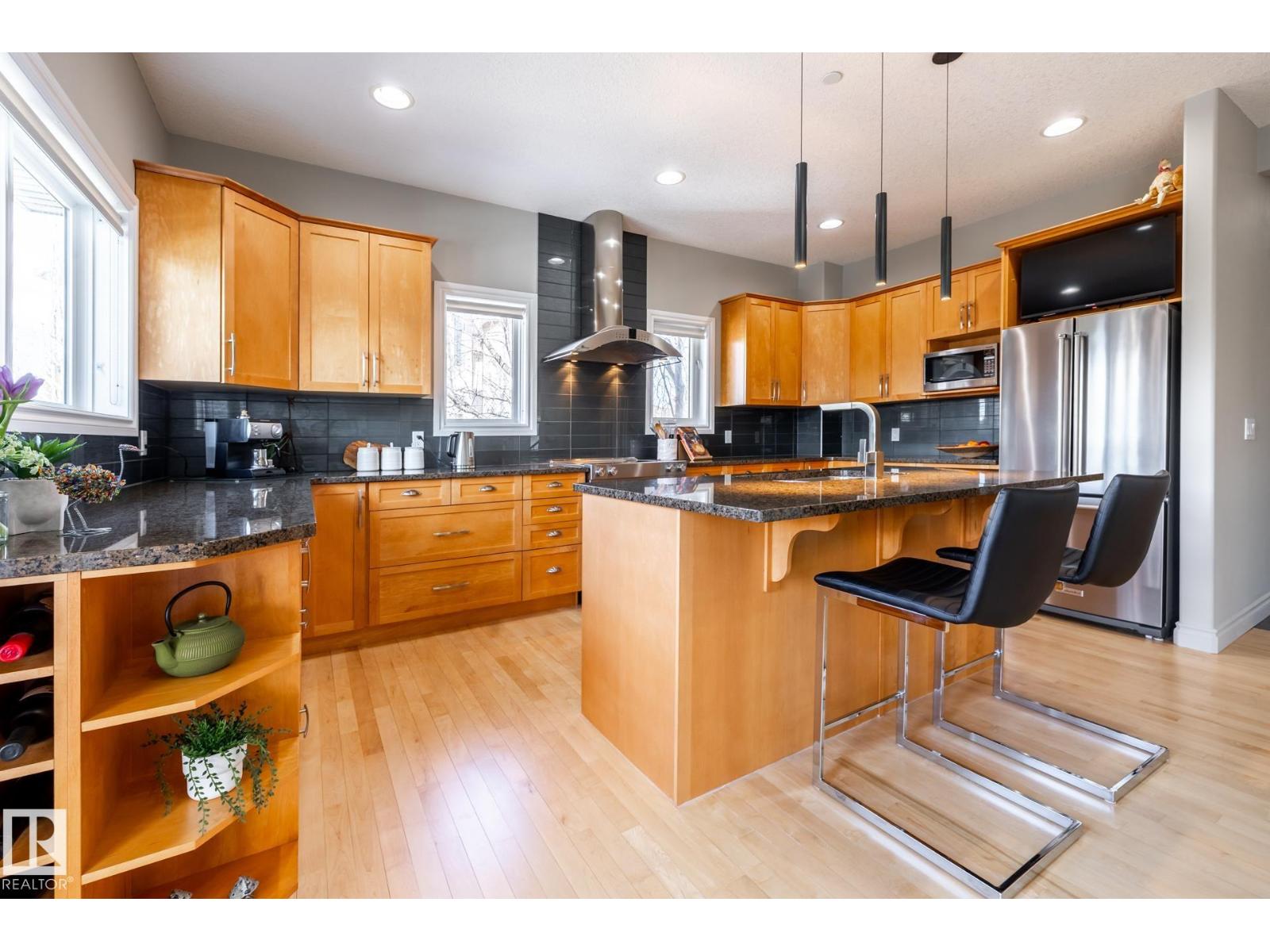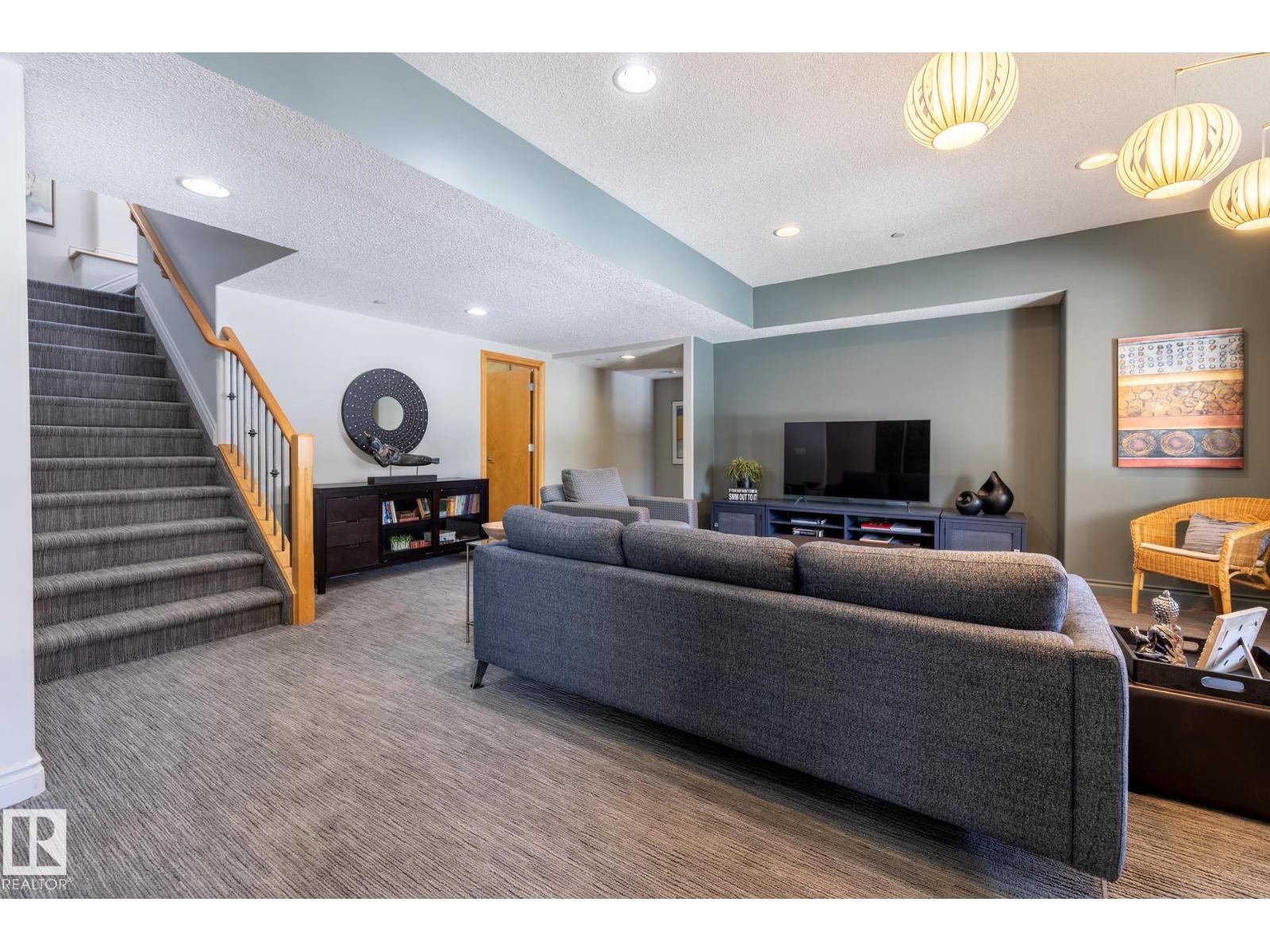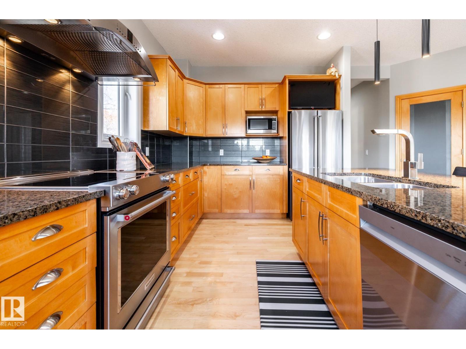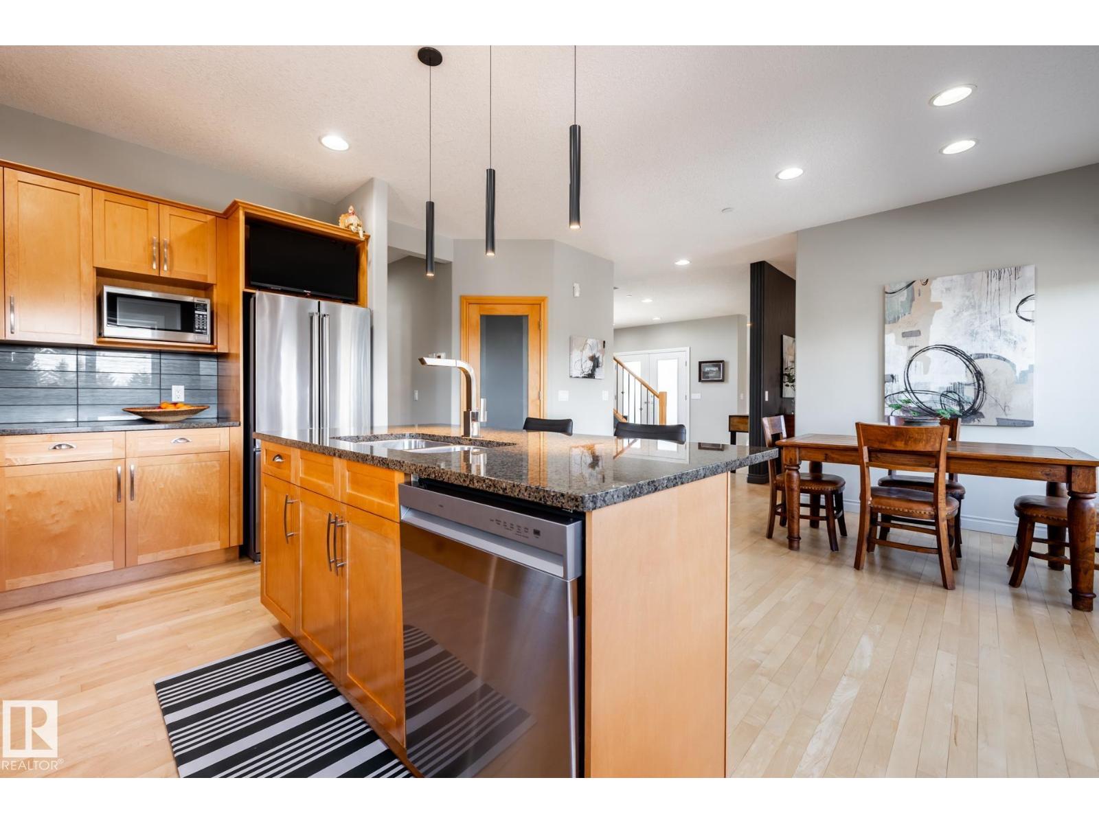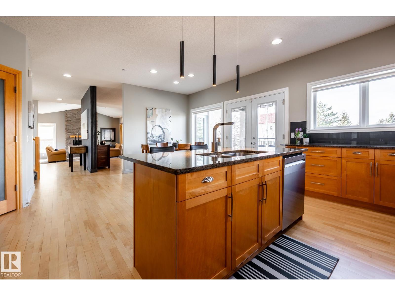 EXECUTIVE HOME WITH PRIVATE LOT....!WELCOME HOME. METICULOUS ATTENTION TO DETAIL. CUL DE SAC LOCATION. Upon entering this property you walk into a spacious foyer, living room with vaulted ceilings and feature stone fireplace and formal dining room. Spacious nook area, walk in pantry and large kitchen with granite and new SS appliances. Kitchen walks onto a large deck overlooking yard. Main floor laundry room with sink and loads of closets. Upstairs is a private office and the Primary retreat is expansive with walk in closet, and well appointed 5 pce.ensuite. Basement is a WALKOUT with in-floor heating, 2nd and 3rd bedrooms, rec room with doors to lower covered patio and 4 pce. bathroom.YARD is beautifully landscaped with private sitting area and firepit. Oversized dble garage with man door, drain and cold water tap. Upgrades: roof (2024),HE furnace (2025) sump pump (2023) and more. (id:51989)