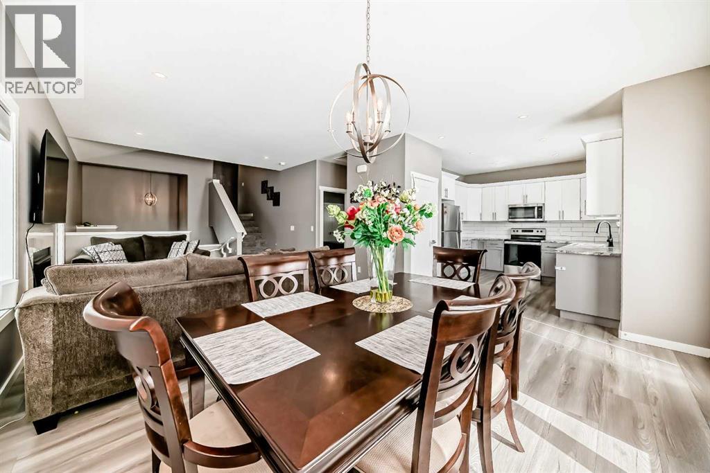 Welcome to this beautifully maintained 2022-built home offering modern design, quality finishes, and exceptional value. Showcasing a bright open-concept layout, the main floor features a spacious living room with a coffered ceiling, textured detail, large windows, durable laminate plank flooring, and a stylish gas fireplace.The kitchen is both functional and elegant, complete with abundant cabinetry with crown moulding, a full tile backsplash, stainless steel appliances, and a full-size pantry. The adjoining dining area provides access to a sunny, south-facing deck and a large backyard—perfect for entertaining.The primary bedroom offers a private retreat with a four-piece ensuite and dual closets. Two additional front-facing bedrooms are well sized and filled with natural light.The fully fenced yard features a high-quality vinyl fence, and the lawn has been professionally landscaped and meticulously maintained.The unfinished basement boasts high ceilings and in-floor heating roughed in, offering excellent potential for future development.Additional features include a high-efficiency furnace and heat recovery ventilation system.Located in the desirable Laredo community, close to shopping and amenities, this home combines style, comfort, and future potential. Move-in ready and a must-see! (id:51989)