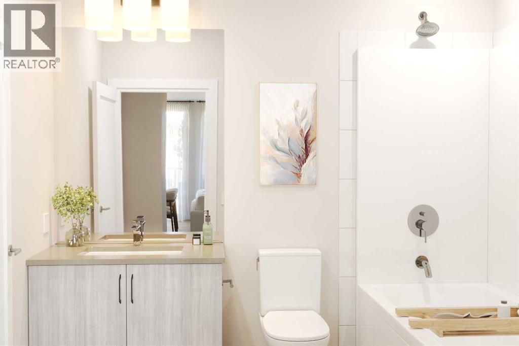 ROOFTOP PATIO • MOUNTAIN VIEWS • LOW CONDO FEES — This pre-construction 2-bedroom, 2-bathroom condo offers nearly 1,000 sq. ft. of practical, well-designed living space, ideal for first-time buyers or investors seeking strong value. Featuring 10+ ft. ceilings, large windows, and modern quartz countertops, the home provides a bright, functional layout with beautiful mountain views. Scheduled for Summer 2028 possession, the unit includes titled underground parking and private storage, along with access to a rooftop patio with BBQ stations and a fire lounge, plus convenient amenities such as a dog park and pet wash station. Located close to restaurants, shops, and everyday essentials, this community is designed for comfortable living. With low condo fees and flexible deposit options starting from 5% (as low as $2,500 upfront), this is an excellent opportunity to secure a home at today’s prices with a manageable entry point. (id:51989)