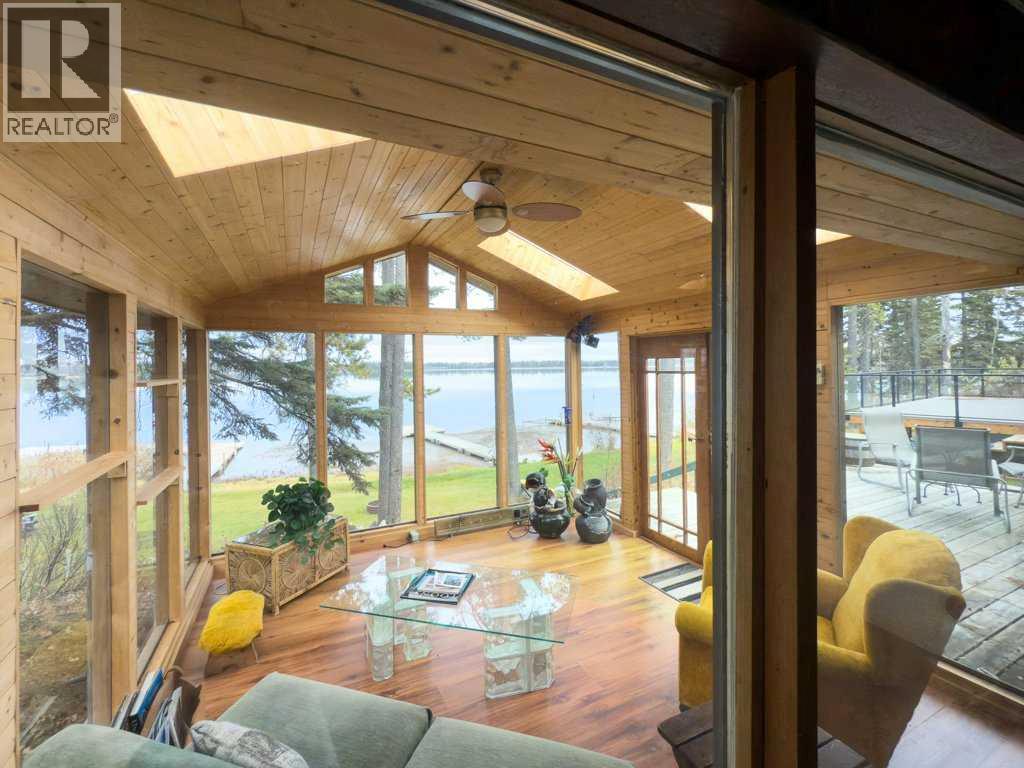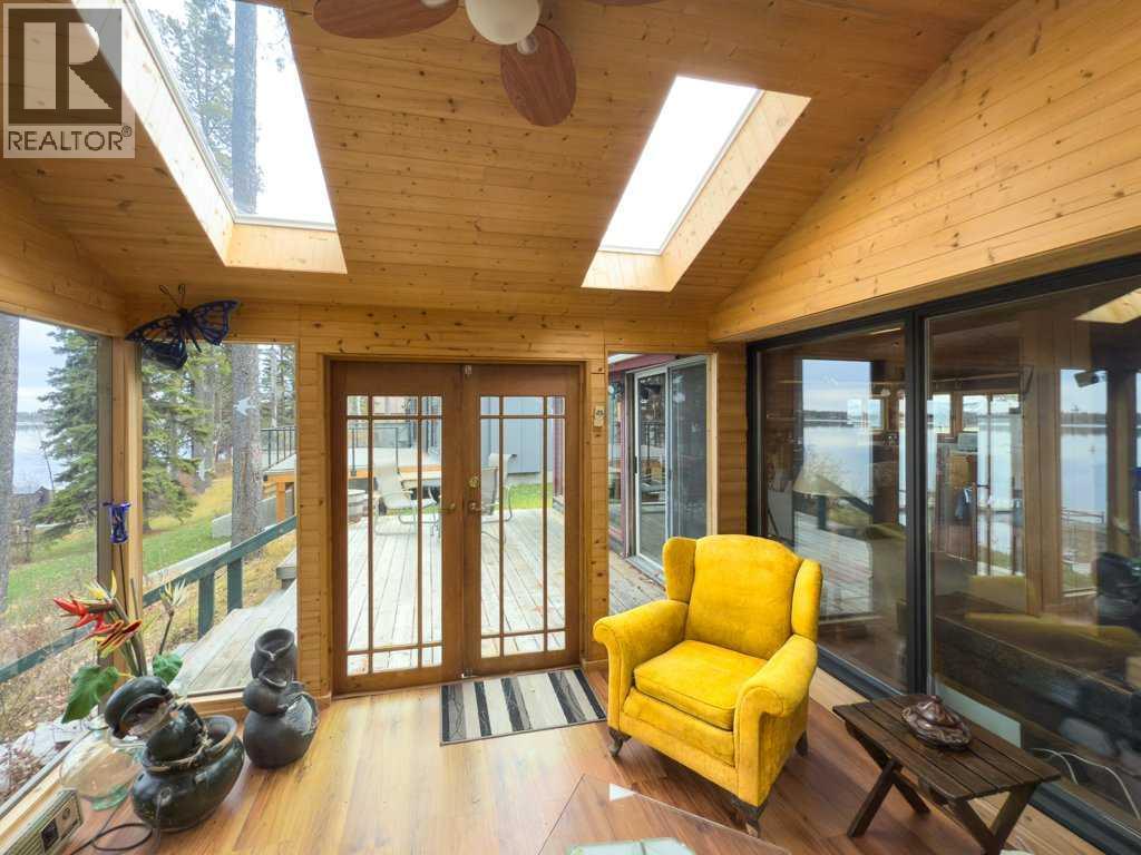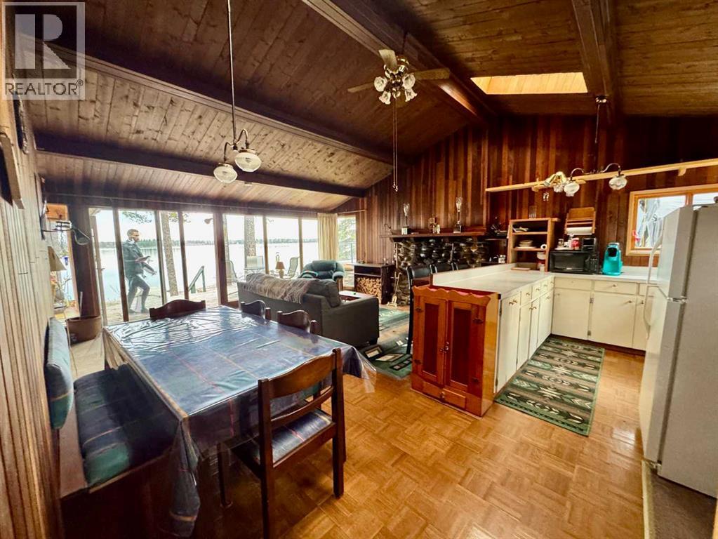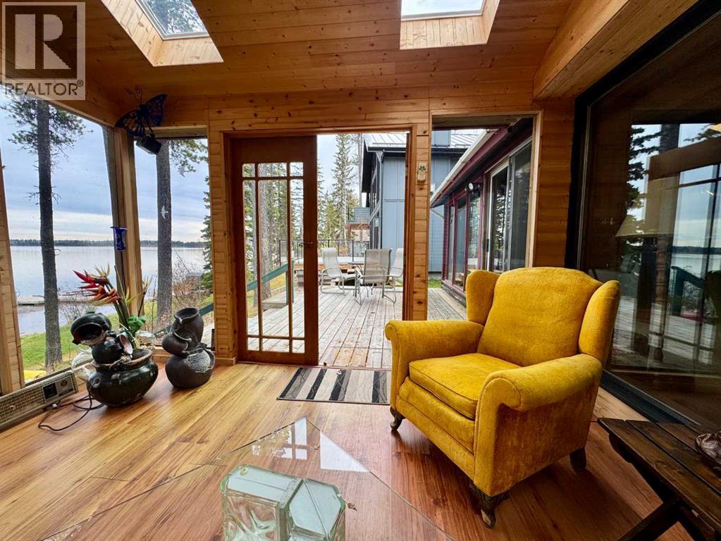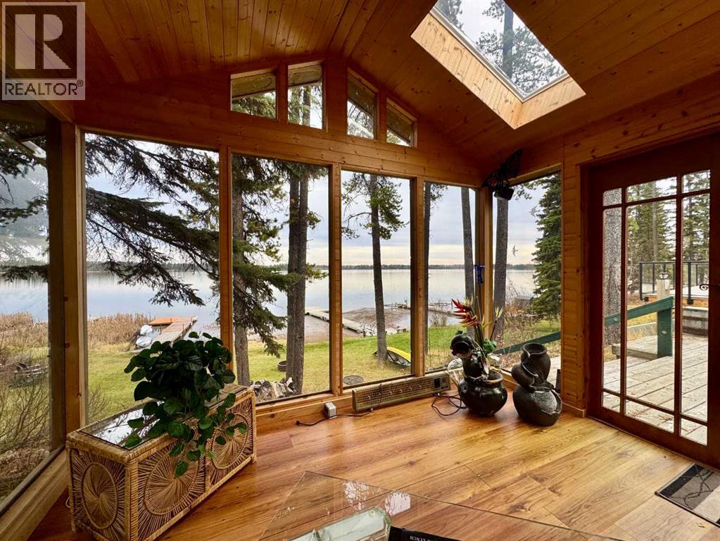 Has lake life been calling your name? Here's your opportunity to own a charming cabin on a lease lot in Crimson Lake Provincial Park with 40' of lake frontage. You'll feel the serenity of lake life as soon as you step through the front door and into the large great room where you can look out through the oversized windows to the beautiful lake vista. There's a small kitchen area that blends with the wide open living space and amazing rock surround fireplace. Patio doors open to the lake side deck and stunning sunroom. The one bedroom is large enough for multiple beds including custom built bunkbeds and also has a patio door that opens to a deck on the west side. An alcove is currently being used as another bedroom and has a lovely view of the lake (there is presently sleeping accommodations for 6 people). The three piece bathroom has a large closet (previous sauna?) and all furnishings in the cabin are included with the sale. The lot has just the right amount of landscaping with a set of stairs going to the lake front and fire pit as well as a brick patio and fire pit near the back deck. There's a feature rock garden and fountain at the front of the property and several storage sheds. This is a Provincial Lease which renews in January 2045, PML 820381. Annual lease payment of $1356.00 (due January 1, 2026) and the assignment fee is $3150,00 + GST. (id:51989)