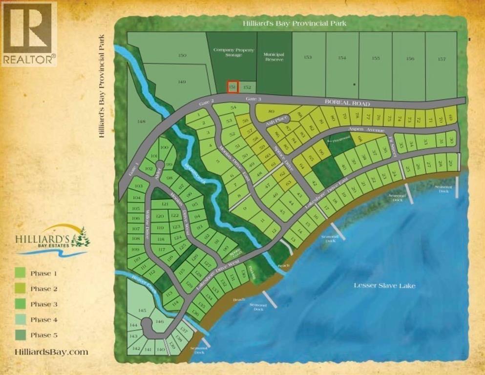 0.22 Acre Lot situated on the north edge of Hilliards Bay Estates on Lesser Slave Lake. This affordable lot sits atop an incline overlooking the lake, just waiting for you to build your dream home or cabin. Lot 151 also comes with a 9-year building allowance. Hilliard’s Bay Estates (HBE) features an architectural theme centered on premium cottages. The property offers stunning views of boreal wildlife and the soothing sounds of Monias Creek, where fiddlehead ferns thrive along winding trails. With nearly 1 km of lakefront access, all HBE lot owners enjoy exclusive beach and lake privileges. The old-growth forest on-site is teeming with wildlife and comes alive in spring with the return of songbirds. Adjacent to Hilliard’s Bay Provincial Park, the estate borders the Trans-Canada Trail. If you are interested in touring the entirety of the estates, book a time today! (id:51989)
