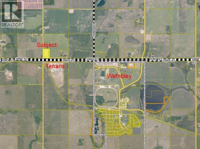 Fantastic location to set up your business. One of the few industrial locations to set up on west of Grande Prairie with Highway 43 frontage and access. Whether you have an oilfield service company, an agricultural enterprise or a commercial endeavor, you will surely benefit from this great exposure. 12+ acres zoned RM-4 just 8.5 miles west of Grande Prairie city limits and just outside the town of Wembley, directly across the Highway from Tenaris. Great setup with service road directly in front of property, all services close by and great slope on the property. At about 80k per acre you will be hard pressed to find a comparable property. (id:51989)
