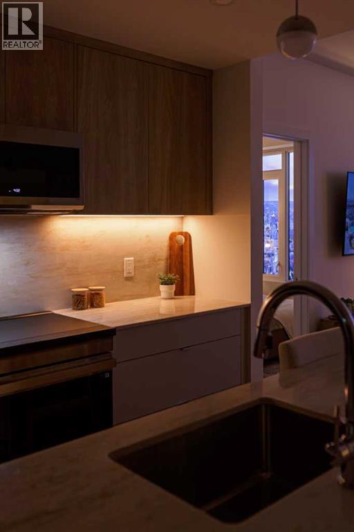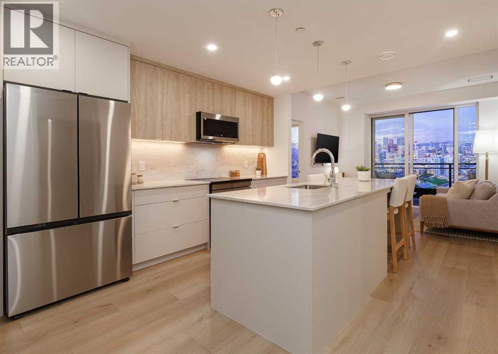 ** OCTOBER 2030 COMPLETION ** Unit Photographed is Display Suite & Amenities are Renderings || Welcome to Broadway on 17th, a landmark new development redefining urban living in the heart of Calgary. This architecturally striking community offers a rare opportunity to secure a home in one of the city's most vibrant and evolving corridors.The C4 model on the 29th floor showcases the perfect blend of sophistication and functionality, featuring thoughtfully designed interiors, premium appliances, and contemporary finishes curated for elevated everyday living. Spacious and efficient, this home reflects modern design principles while offering comfort, style, and flexibility.Residents will enjoy an unmatched collection of resort-style amenities, including a full spa and sauna, state-of-the-art fitness studio, co-working spaces, games lounge, arcade, sports simulator, and beautifully designed social lounges. Pet-friendly areas and collaborative workspaces further enhance the lifestyle experience.A true highlight is the Level 46 Fireside Sky Lounge—an exclusive retreat featuring a bar, indoor fireplace, and private dining areas, set against breathtaking panoramic views of downtown Calgary and the Rocky Mountains.At ground level, the vibrant Broadway Plaza brings daily convenience to your doorstep with curated retail, restaurants, cafés, daycare, and office spaces—creating a dynamic, walkable urban village. Thoughtful tower placement maximizes natural light, privacy, and sightlines, ensuring each residence benefits from optimal sunshine and stunning views.Offering studios, one-bedroom, two-bedroom, junior three-bedroom residences, and exclusive sub-penthouse and penthouse homes, Broadway on 17th delivers options for every lifestyle and stage of life.Located just minutes from Calgary's best shopping, dining, entertainment, and cultural destinations, this is urban living at its finest. Scheduled for completion in October 2030.CALL FOR MORE DETAILS AND A PRIVATE PREVIEW .Live above the energy at Broadway on 17th by Vesta Properties. (id:51989)