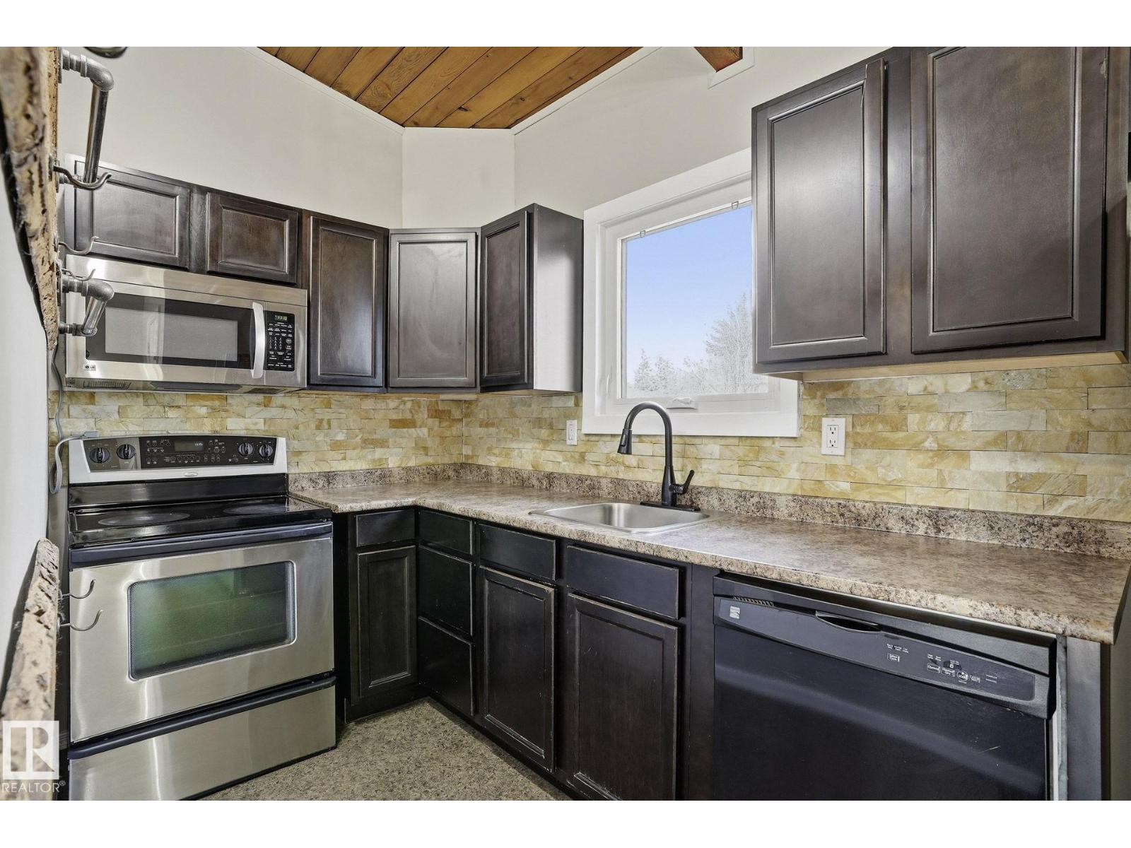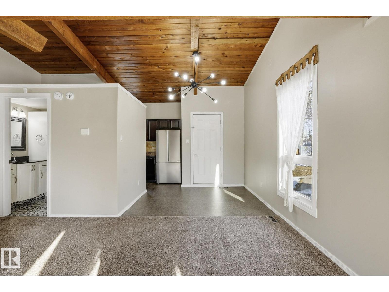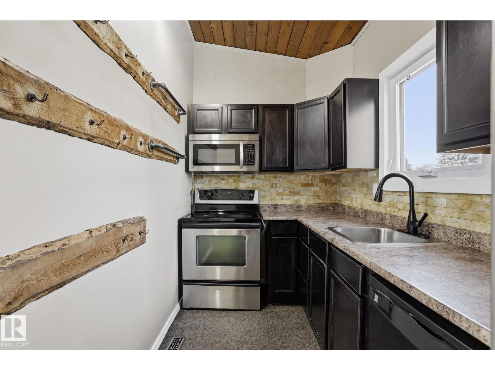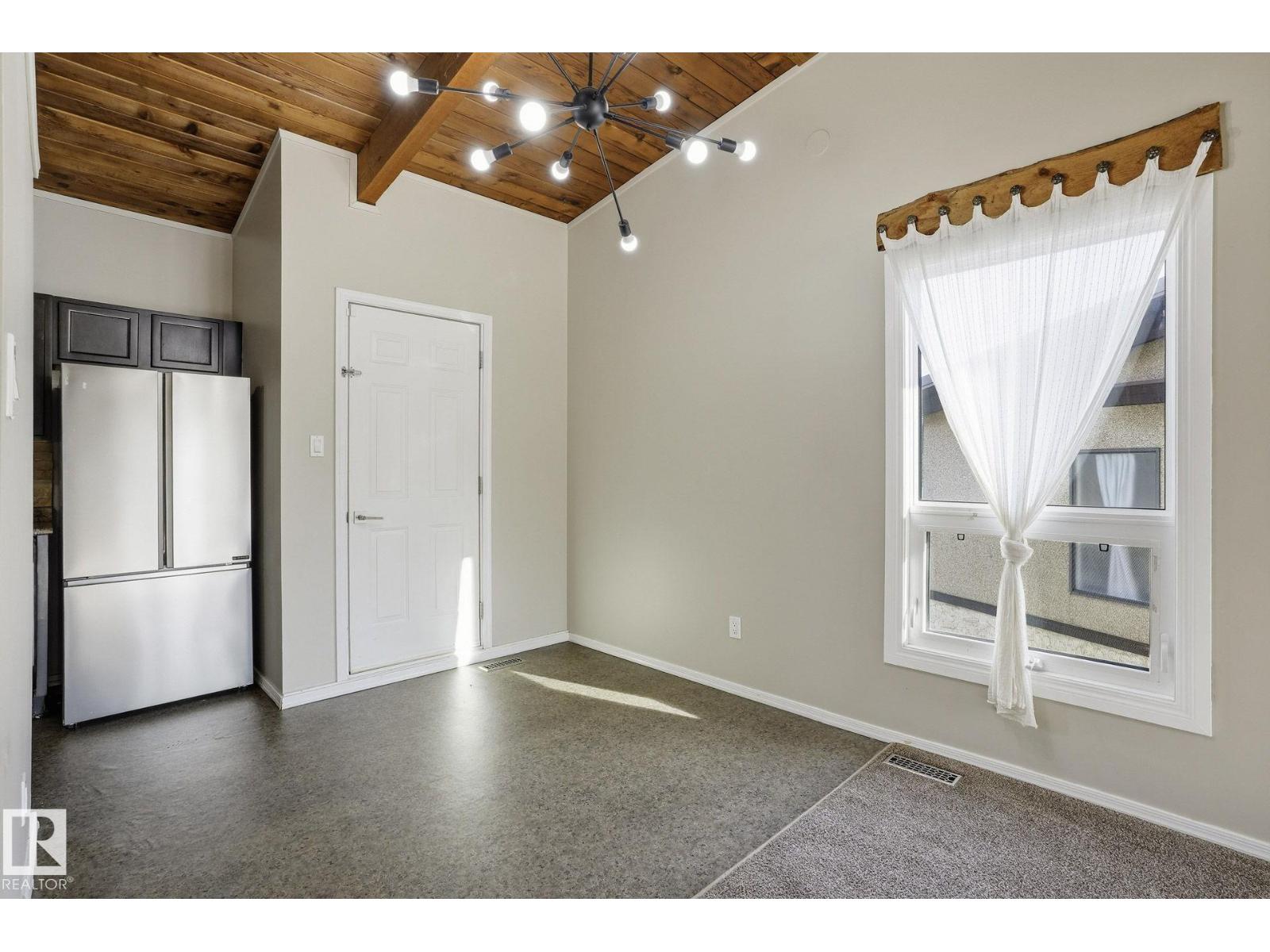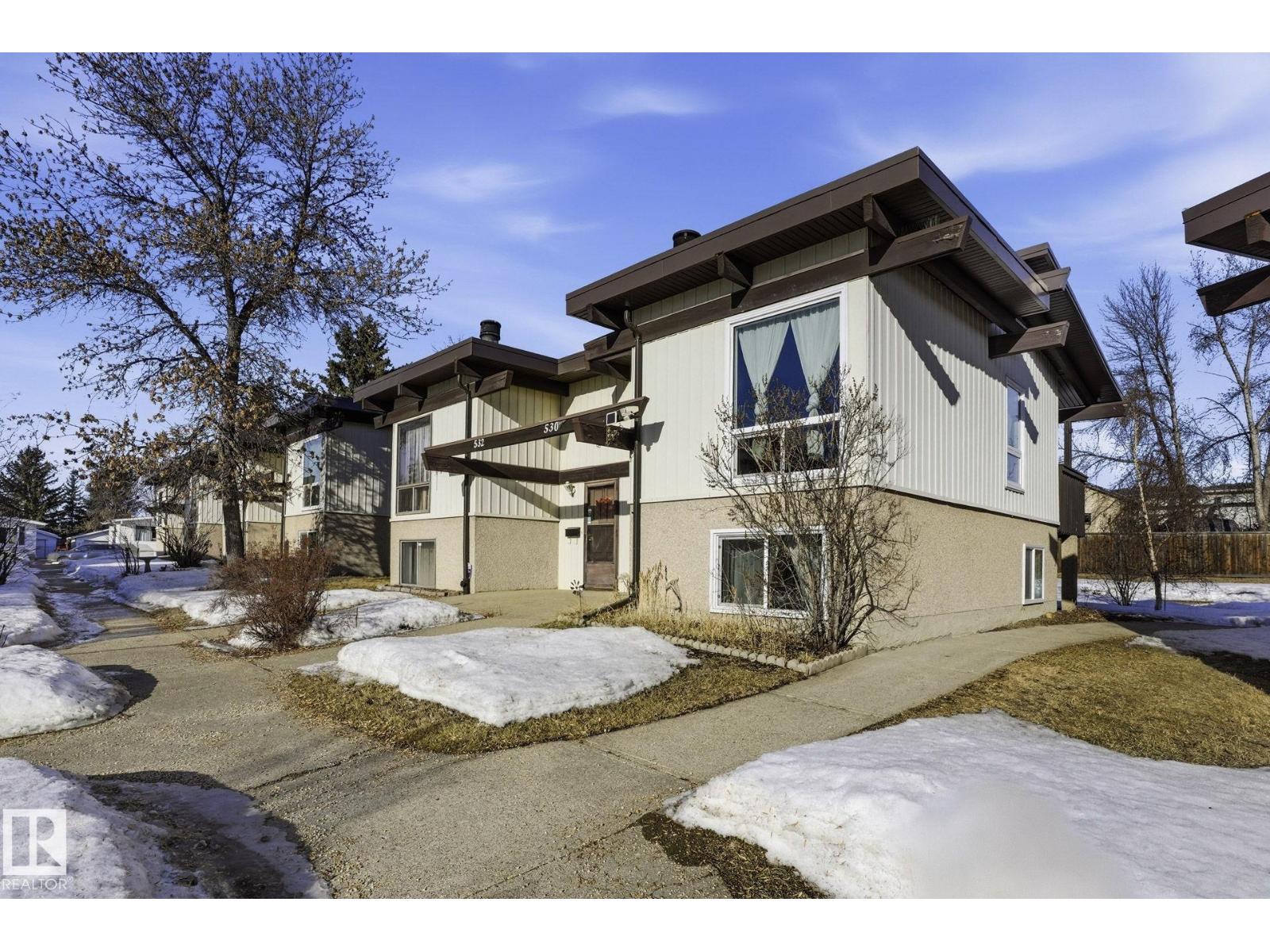 Welcome home ! cozy upgraded home with vaulted open beam cedar ceilings , rustic touches , large newer bright windows and wood burning fireplace , recent upgrades include newer windows , front door , new fridge , new hot water tank , new furnace , tile in bathroom , an extensive maintenance list including replacing tub cartridges , seats and diverters , clean and paint furnace room floor, recalk tub , etc. etc., Very peaceful location , backing onto a greenbelt with large trees in a quite neighborhood, steps away from new LRT, shopping malls , schools , parks and playgrounds , your new home awaits (id:51989)