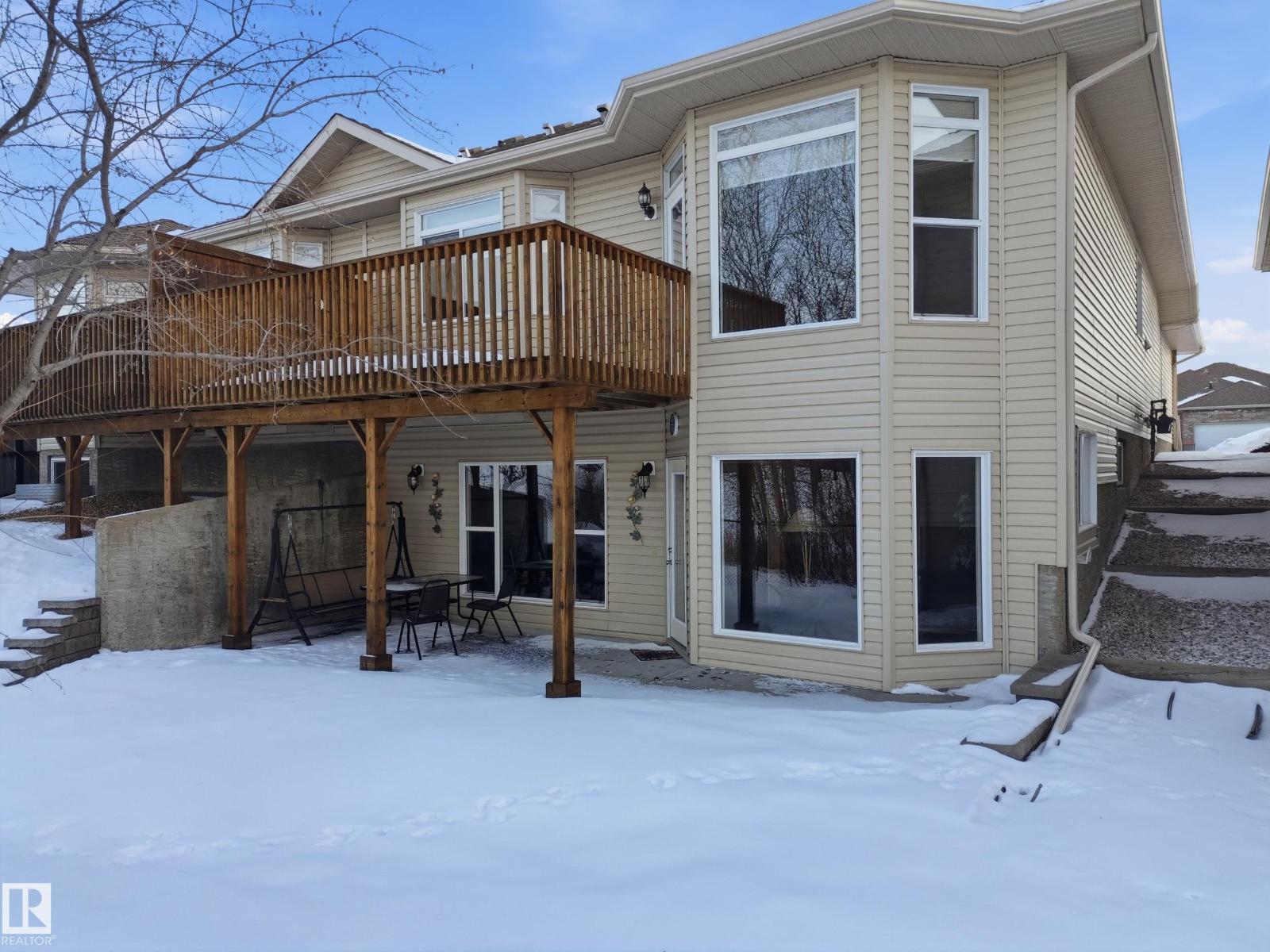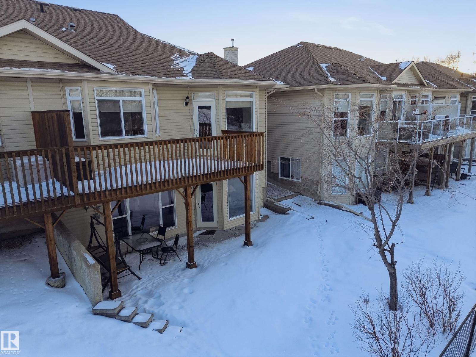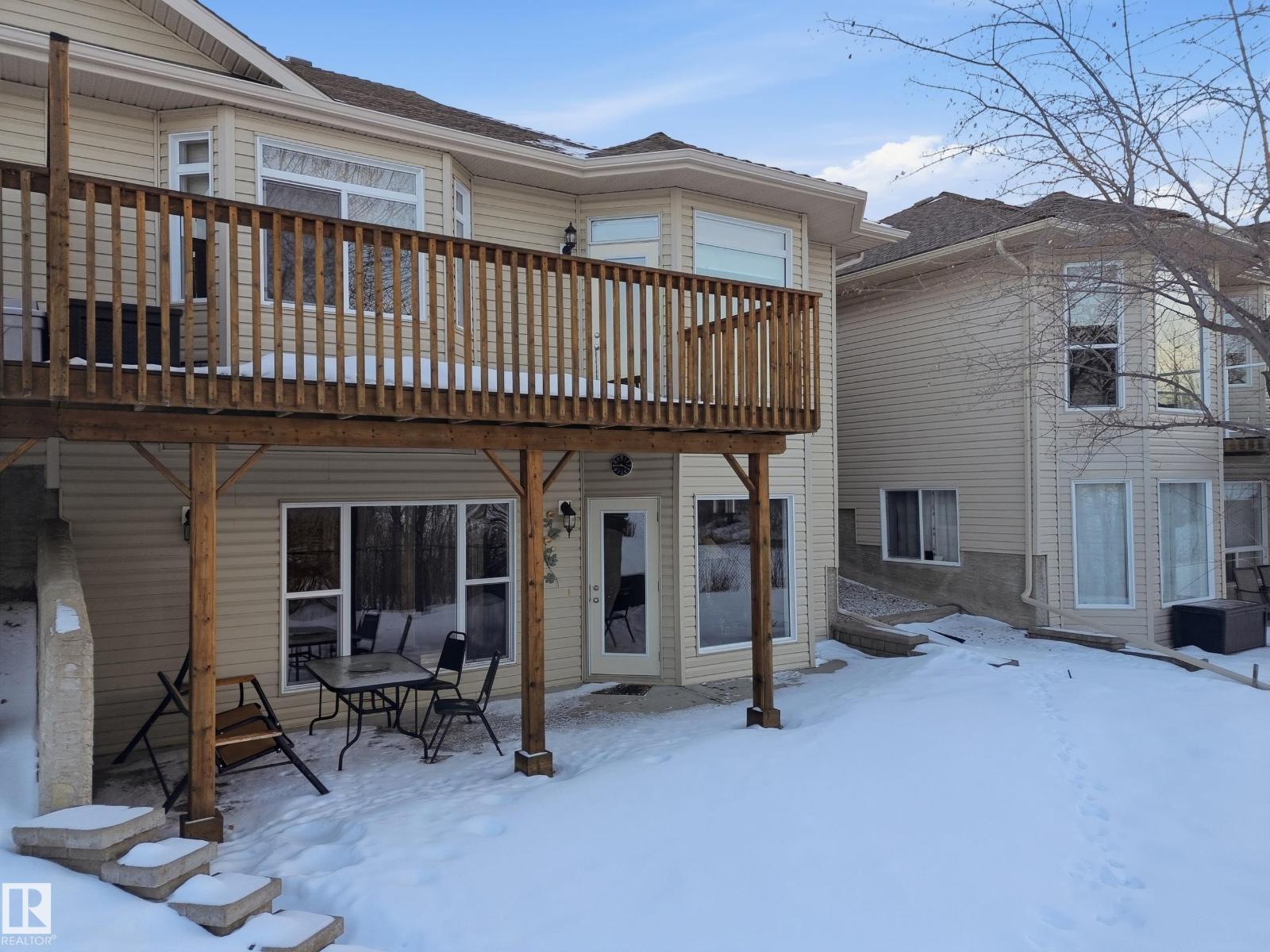 This Great 55 Plus Condo located in Stony Plain is a rare find. 2 Bedrooms up and open Basement for completion this Walkout has a great deck to enjoy the Pond and Trees behind the property. The Neighbors are great and are not in any hurry to leave. Well maintained open concept with ensuite and full bath, double attached garage, deck off the Living Room and so much to enjoy with this property. If your ready to retire or are full retired this property is a great opportunity. (id:51989)