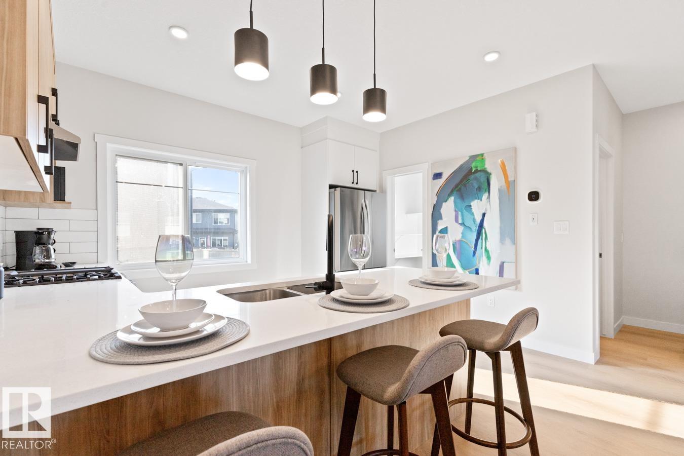 WELCOME TO THE ORCHARDS AT ELLERSLIE A vibrant south Edmonton community minutes from South Edmonton Common, Costco, the Airport, and surrounded by ponds, parks, green spaces, trails, and new schools. ABOUT THIS FULLY FURNISHED 3 BED, 2.5 BATH TOWNHOME • Bright open-concept living and dining area with balcony • Modern kitchen with stainless steel appliances, quartz counters, large island, and huge pantry • 65 Smart TV included • Second-floor in-suite laundry • Second-floor study nook • Premium finishings throughout • Primary bedroom with ensuite + walk-in closet • All bedrooms on the second floor • Double attached garage included Pets welcome with approval and pet fee. Utilities can be included at an additional rate. At $2,995/month, utilities remain the tenant's responsibility. (id:51989)
