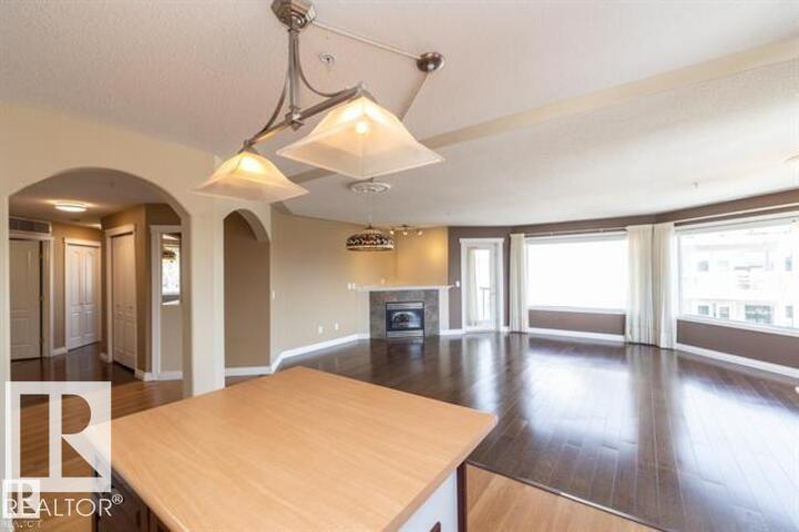 Absolutely stunning 1291 sq ft of luxury without the upkeep. This immaculate 2 bedroom open concept corner unit faces North and East with great views and has a large ENCLOSED balcony. The spacious living room has an electric fireplace,2 choices for the dining room table and is drenched in natural light by 3 huge windows. The Kitchen has an abundance of Beautiful dark cherry cabinets, a pantry, stainless steel appliances and eating bar. Massive Master has walk-in closet and 3 pce. ensuite . Second bedroom is huge and doubles as a den. There is an additional 4 pce bath , in suite laundry with storage. This unit comes with a TITLED Heated Underground parking stall , central air conditioning, 18+ adult building and very wheelchair friendly. Awesome amenity building with u/g accessibility to the exercise room, party room, steam room, media room, easy access to Whitemud, Anthony Hendy, close to Grey Nuns, Shopping, Golf and mins away from the new LRT. freshly painted (id:51989)