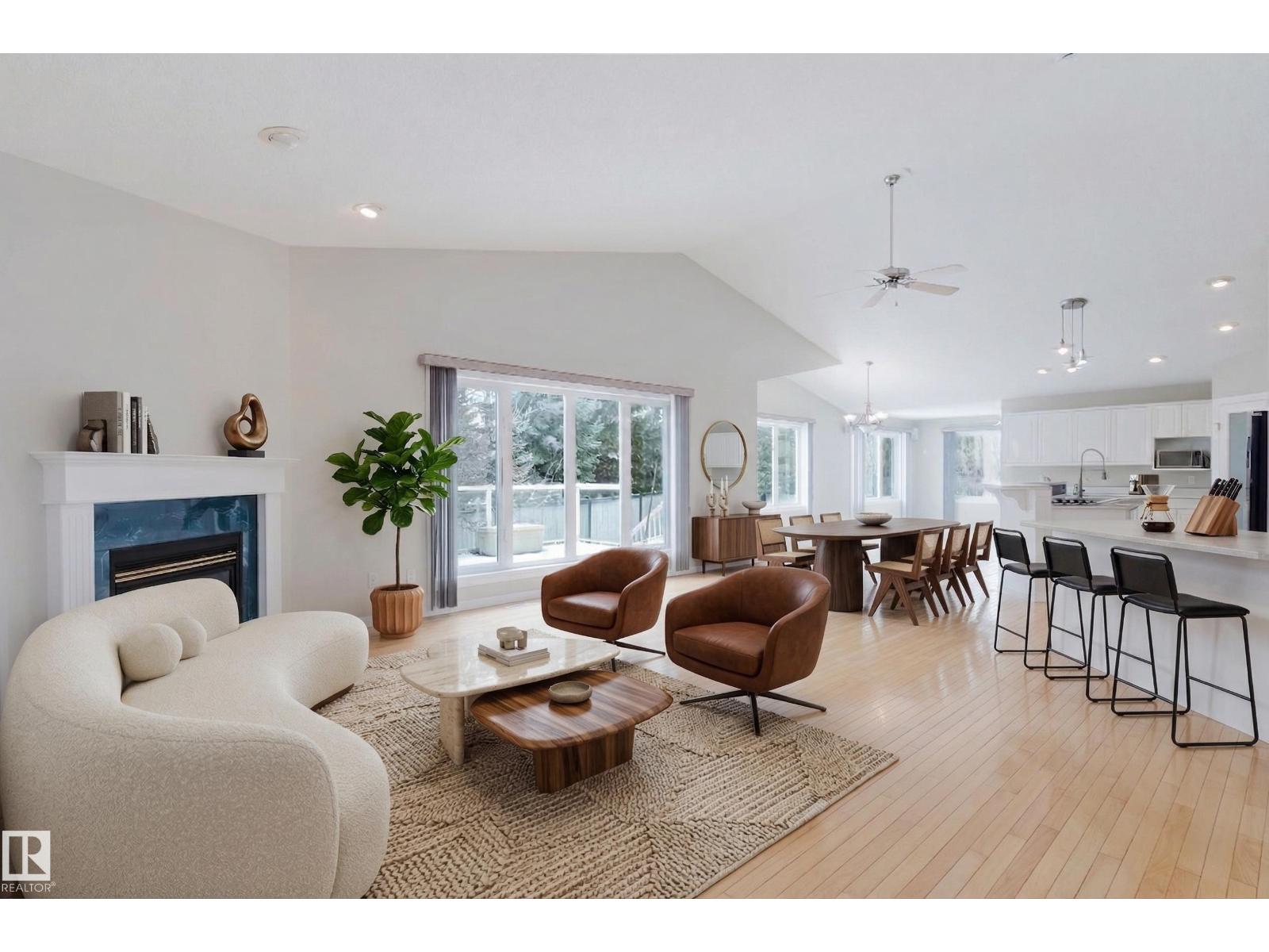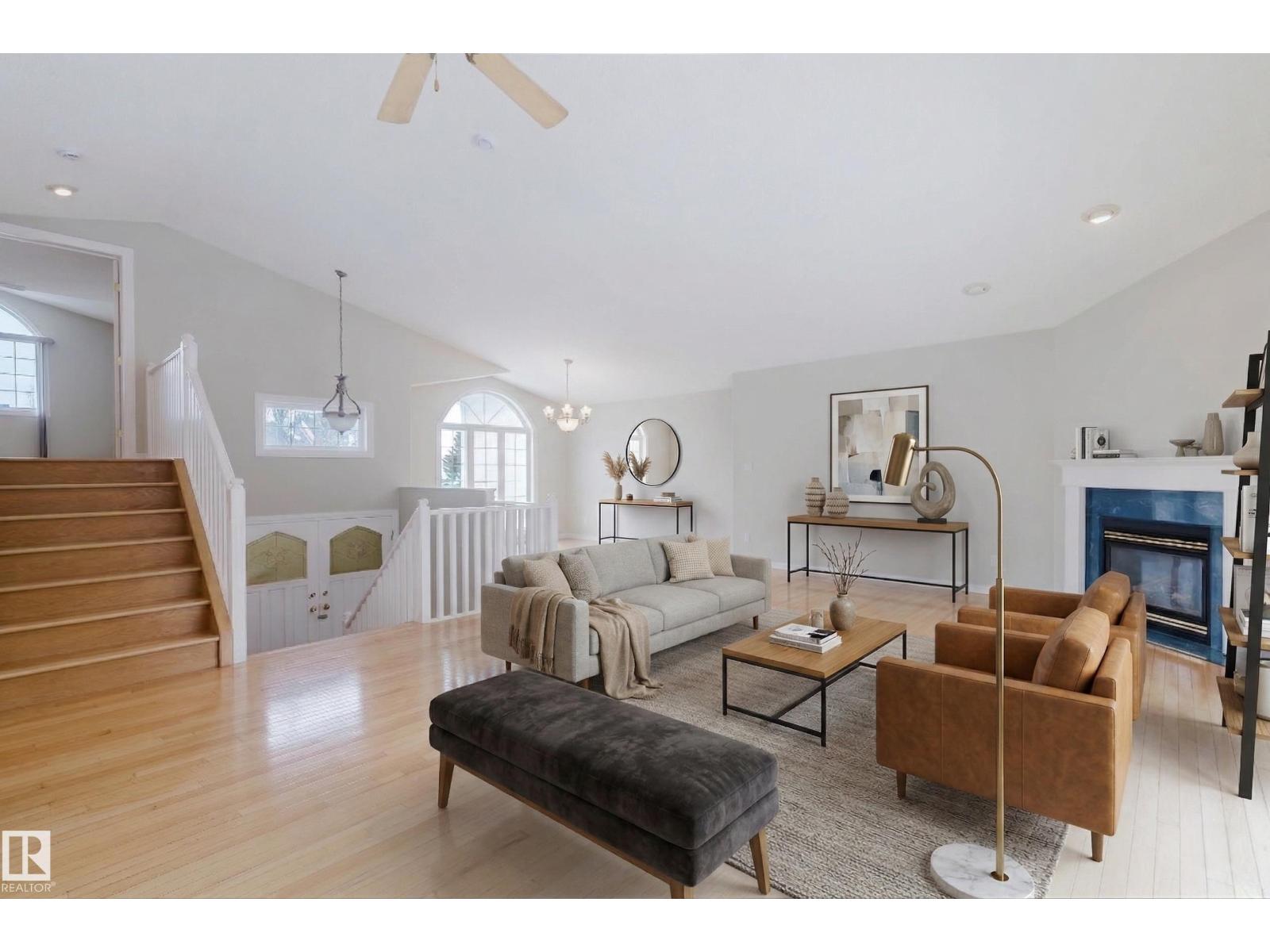 Stunning bi-level home located in the highly desirable Falconer Heights,tucked away on a quiet cul-de-sac with a large pie-shaped lot.This beautiful home features a private primary suite set apart from the main living areas.The main floor offers a bright, open-concept layout with vaulted ceilings,large windows,and an abundance of natural light.The living room with a cozy fireplace flows seamlessly into the dining area and breakfast nook with access to the deck,alongside a spacious kitchen.Adjacent to the kitchen is an open flex space that perfect for a home office.Just a few steps up,you’ll find the spacious primary bedroom,with a walk-in closet and an ensuite with jacuzzi tub and separate shower.The finished basement includes a large family/games room,2 additional bedrooms,4-piece bathroom,and ample storage space. Recent upgrades (2022) include roof,furnace,hot water tank,and washer/dryer.Conveniently located close to schools,Riverbend Square,recreation centres,public transit,and ravine trails. (id:51989)