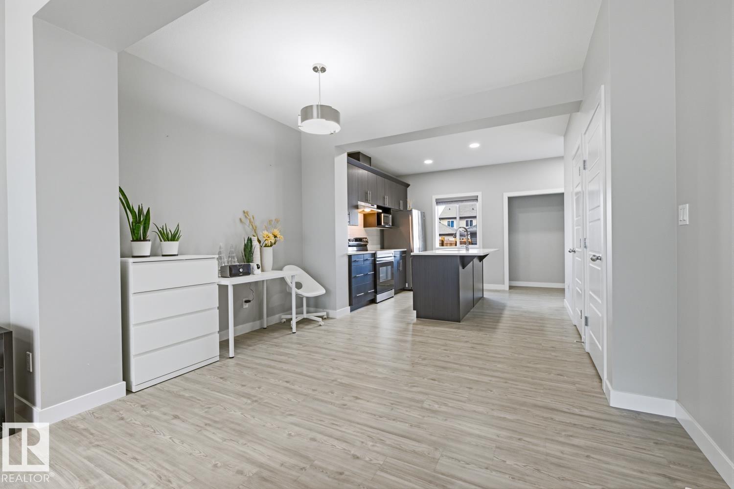 JUST LIKE NEW! This impeccably maintained 2-storey home, finished built in 2022, offers 3 bedrooms, 2.5 bathrooms, and a double detached garage, perfect for families or first-time buyers. Step inside to a bright and welcoming living room that seamlessly flows into a spacious dining area. The modern kitchen features a functional layout with a central island, sleek quartz countertops, and stainless-steel appliances. Upstairs, you’ll find a generous primary bedroom complete with a walk-in closet and a 4-piece ensuite. Two additional ample bedrooms and another full 4-piece bathroom complete the upper level. The unfinished basement provides a fantastic opportunity to customize and add value to suit your needs. Enjoy summer evenings in the fully fenced, west-facing backyard, while the double garage offers convenience and comfort during the winter months. Located close to schools, shopping, public transit, and with quick access to Anthony Henday Drive and major routes. Some photos have been virtually staged. (id:51989)