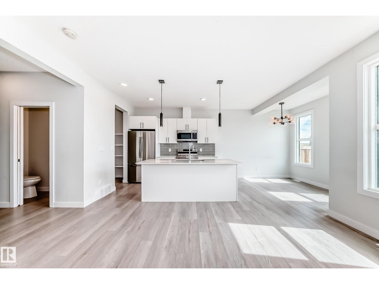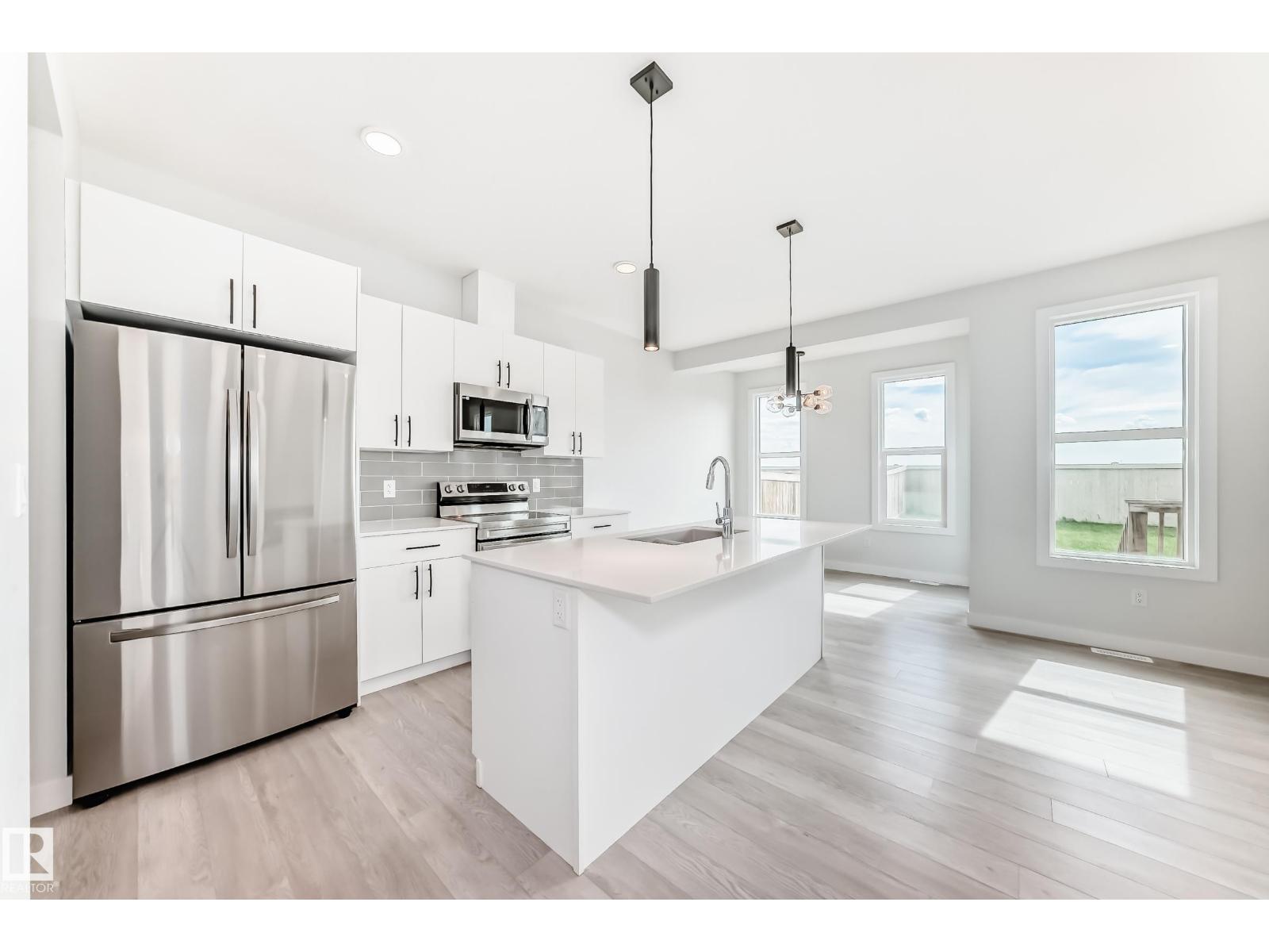 Beautiful half duplex in the vibrant community of Spruce Ridge. This upgraded property comes turn-key and boasts 9 ft ceilings on the main floor, quartz countertops throughout, a handy side entrance and convenient double attached garage. The open concept floor plan is great for entertaining, the upgraded kitchen features a large island, walk though pantry, plenty of cupboards and counterspace and a modern backsplash. The living room has a beautiful fireplace and plenty of windows let natural light shine in. Upstairs you will find a bonus room, laundry room, 4-piece bath and 3 good sized bedrooms, the primary with a 5 pc ensuite and huge walk-in closet!! Endless possibilities in the unspoiled basement. A handy side entrance for possible income suite await your personal touch. Close to schools, shopping and the Tri-Leisure. A great place to call home!! (id:51989)